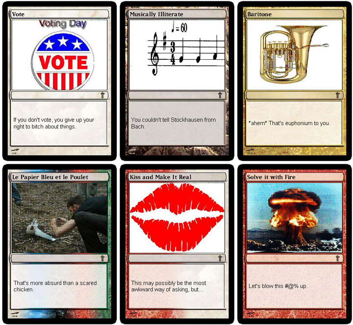 Fantastic. made even better cuz now I want these cards. I think I may print them out and slip them into a magic deck.