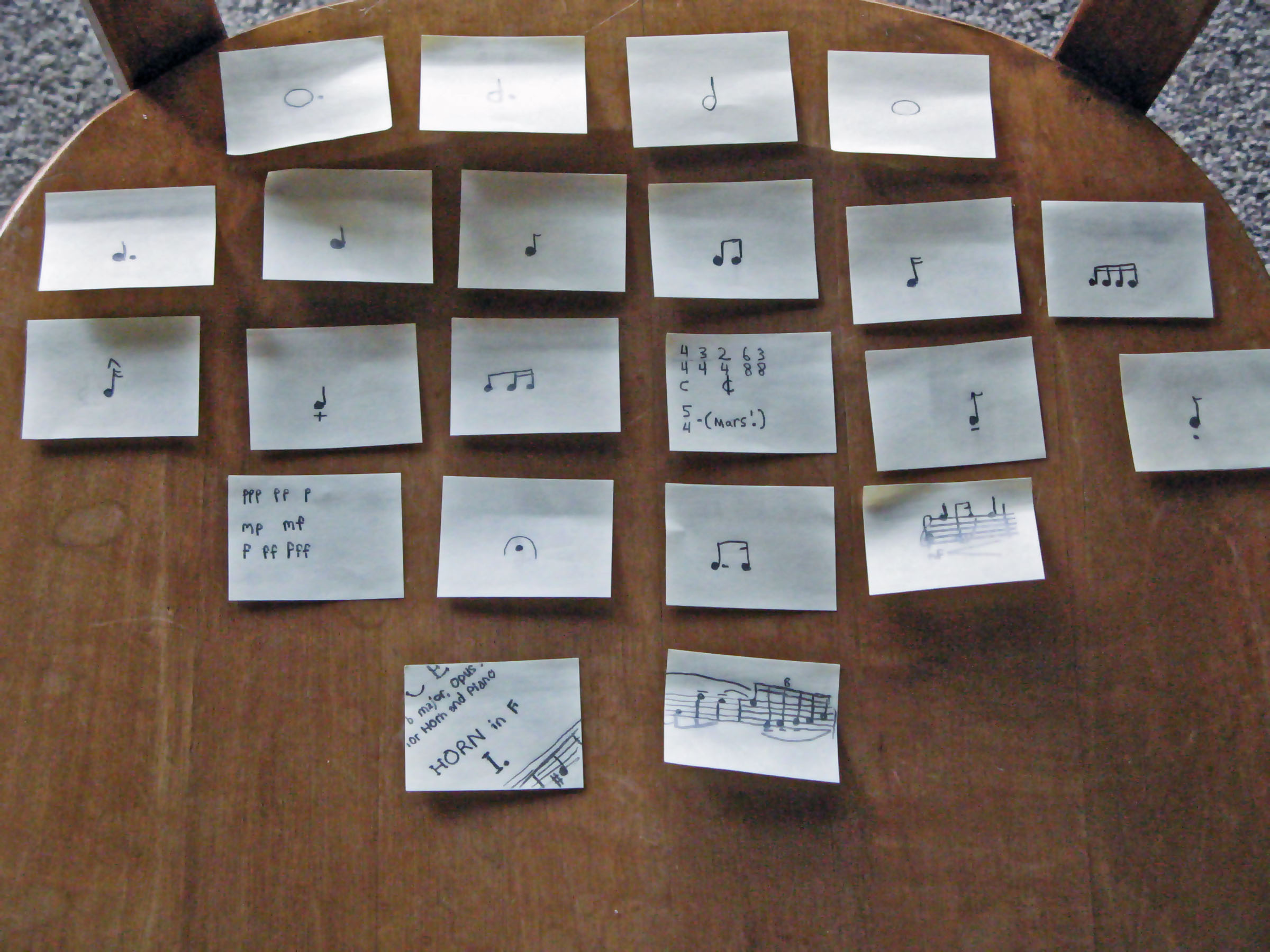 Zoom in and I'll award bonus points to the first player to name the nerdy musical reference on the time-signature post-it. Super-bonus points to whoever can figure out where the bottom two came from, but I doubt you can.