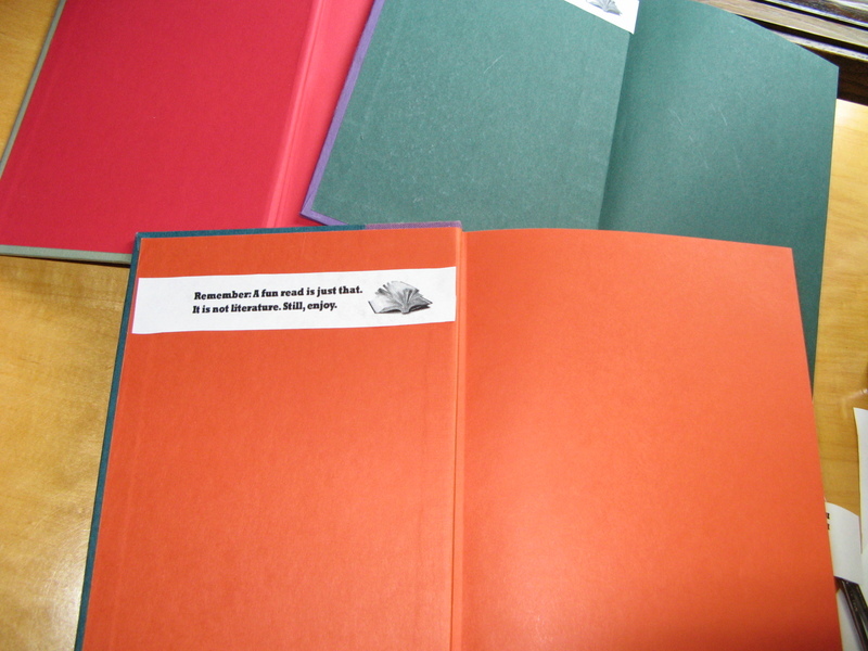 well, it's a fair distance from saying "not great literature" to what these stickers say which is, "it is not literature."