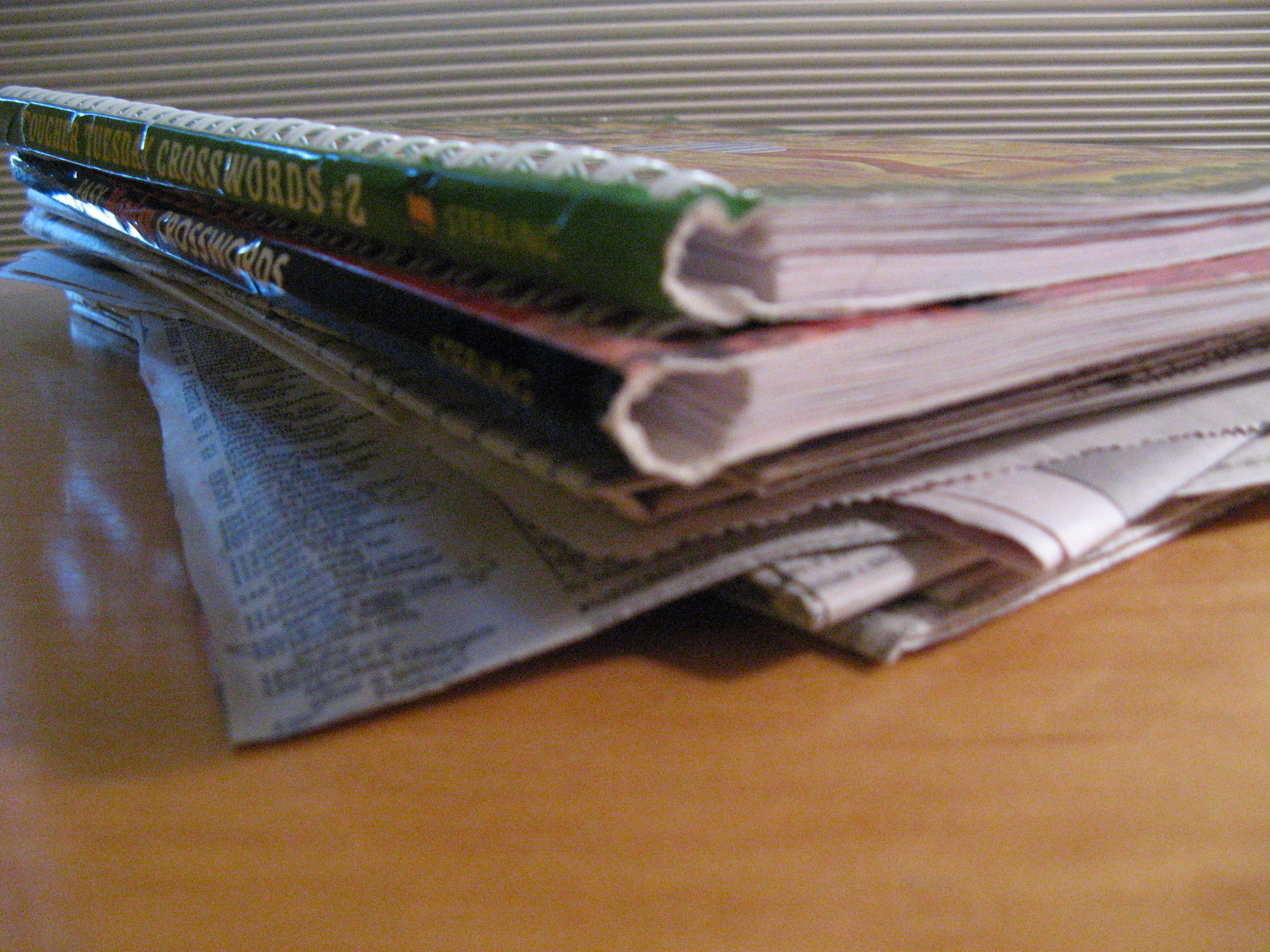 Much of that is in books, not newspaper... but collecting completed newspaper puzzles began to take up a lot of room and possibly posed a fire hazard.