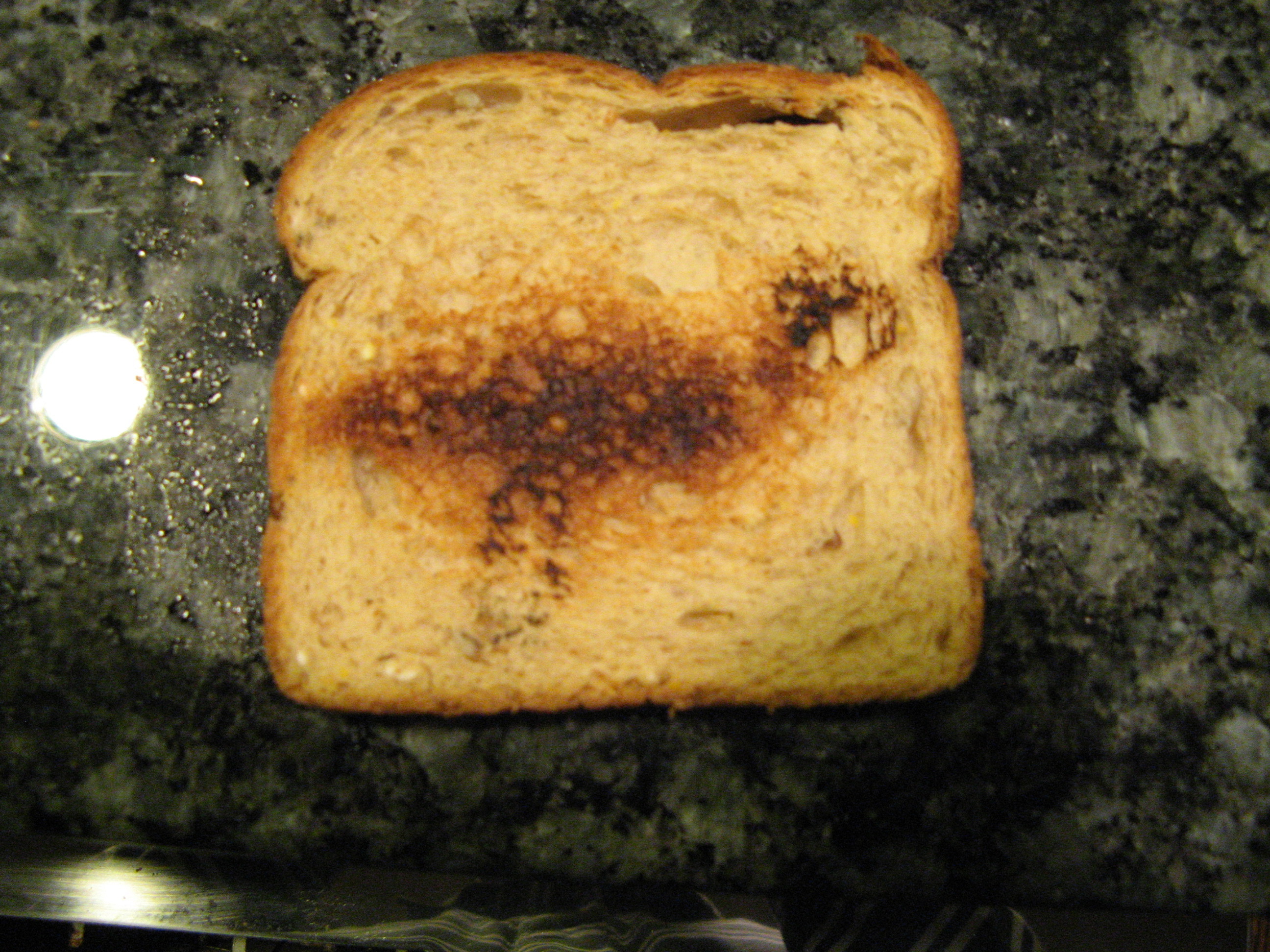 I was going to sell the toast to an internet-casino on eBay, but it looked delicious and so I ate it instead. If, however, the Poe Toaster decides to pop out a Virgin Mary, it may be sold.