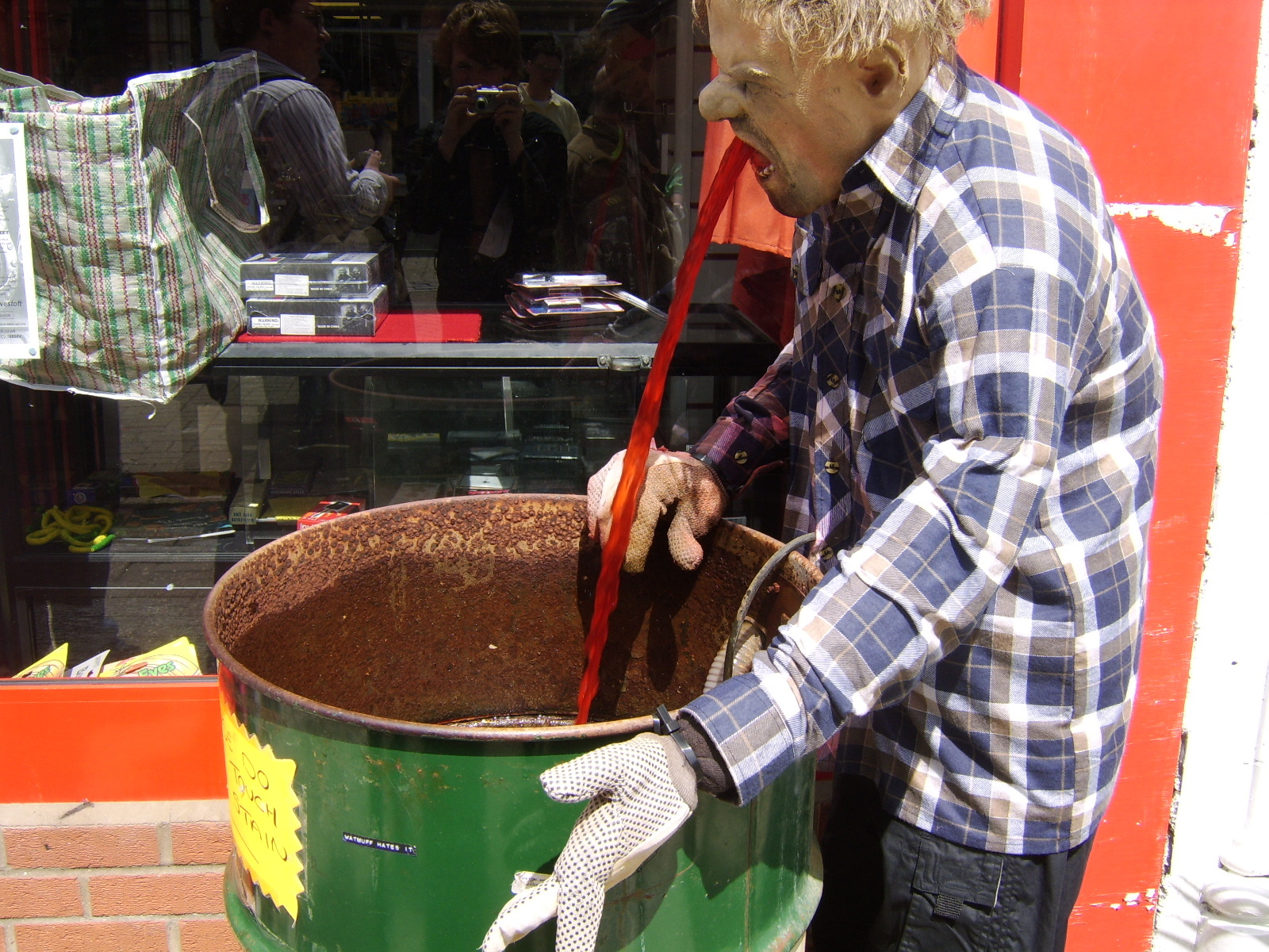 We'll be updating this task with more stuff as we do it. So far we spent the day blitzing Great Yarmouth with stickers, labels, posters and wooden chip forks. The Muff has been spread. See the proof photos.