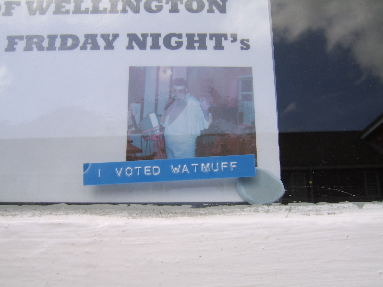 Well it's all about you, you need to get out and spread him. Posters, badges, labels, stickers, leaflets. Any way you can. So far the Great Yarmouth group have used posters and labels and have blitzed their town. Just take a photo of you in an interesting place with a Watmuff poster. One of someone at the Golden Gate Bridge would be awesome.