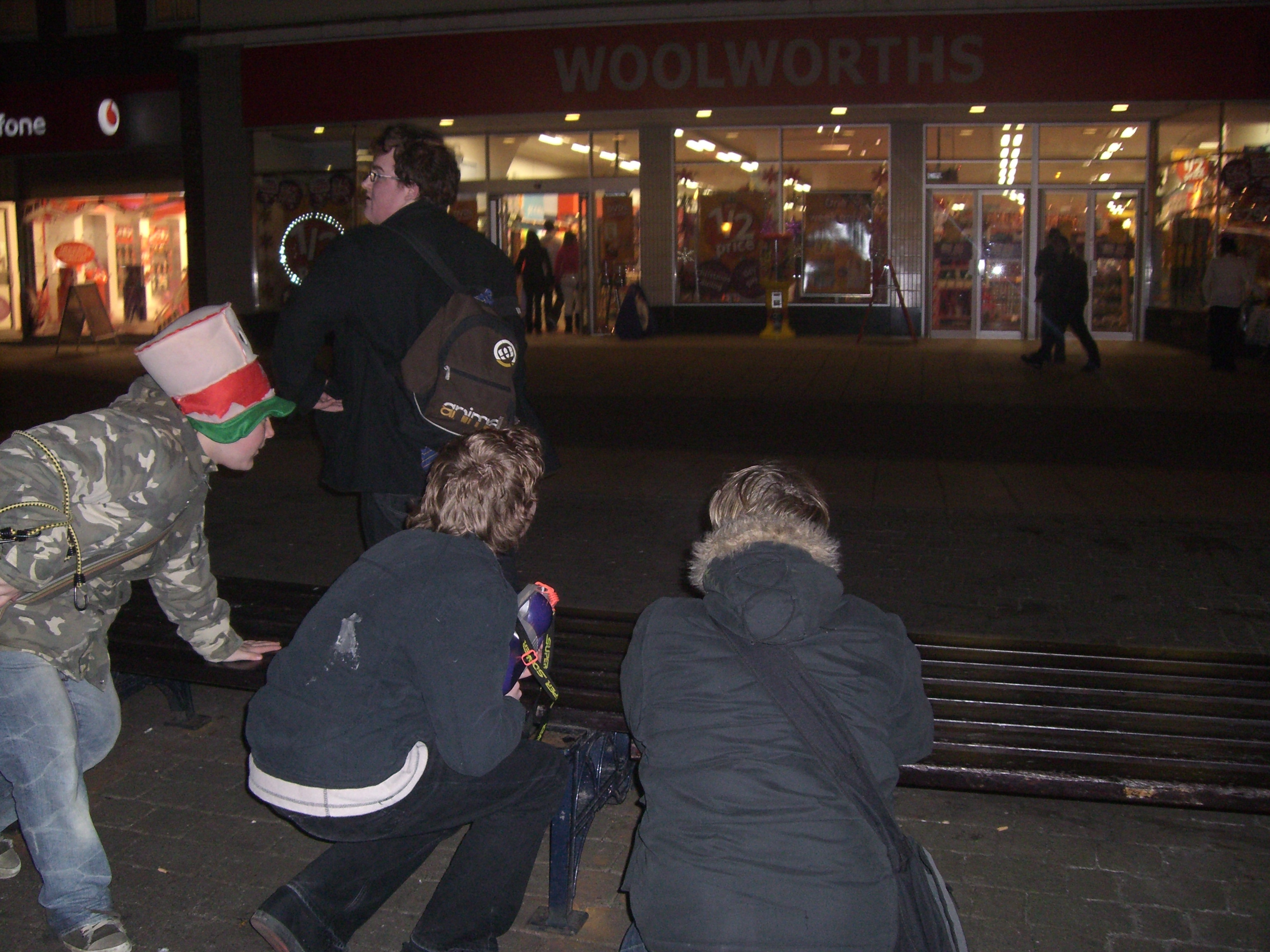 But of course, Argos is far too big a target to go straight in and attack, we needed training up. This came in the form of several practice heists on other shops in the town - Woolworths, Boots and Palmers. We also ducked and dived through the metal market stall frames, and leapt over benches. All of which would be very important in our daring raid.