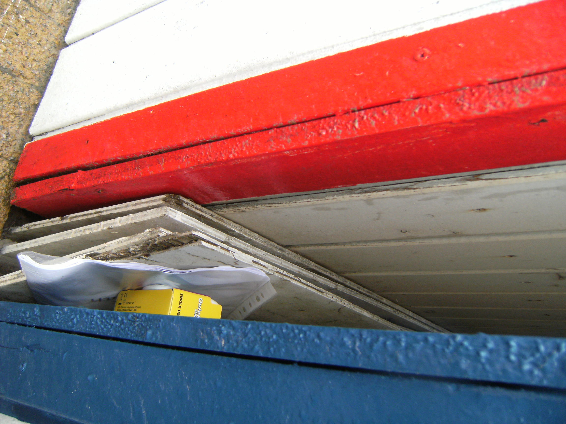 Much better, that's the sort of clue we can cope with in the freezing cold, and we hurried off to examine the colourful wooden sheds of joy optimistically dubbed beach huts to find ourselves a clue. Not this gap... not this gap... Aha!
