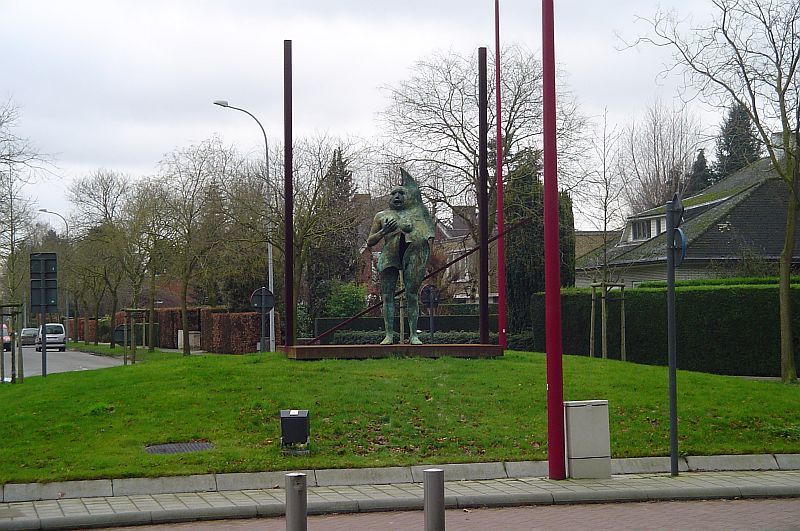 I live in a fairly quiet neighbourhood of a fairly quiet city (Izegem) in a fairly quiet country (Belgium). At the entrance to the neighbourhood there's a traffic island with a sculpture of some sort of approximation of a human on top of a small hill.