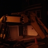 As I was wandering around my neigborhood, I was struck by how different it looks at night. I walk this way fairly frequently, and thus don't usually notice my surroundings. The cranes looked like monsters having a rest from battling. The dark paths a...