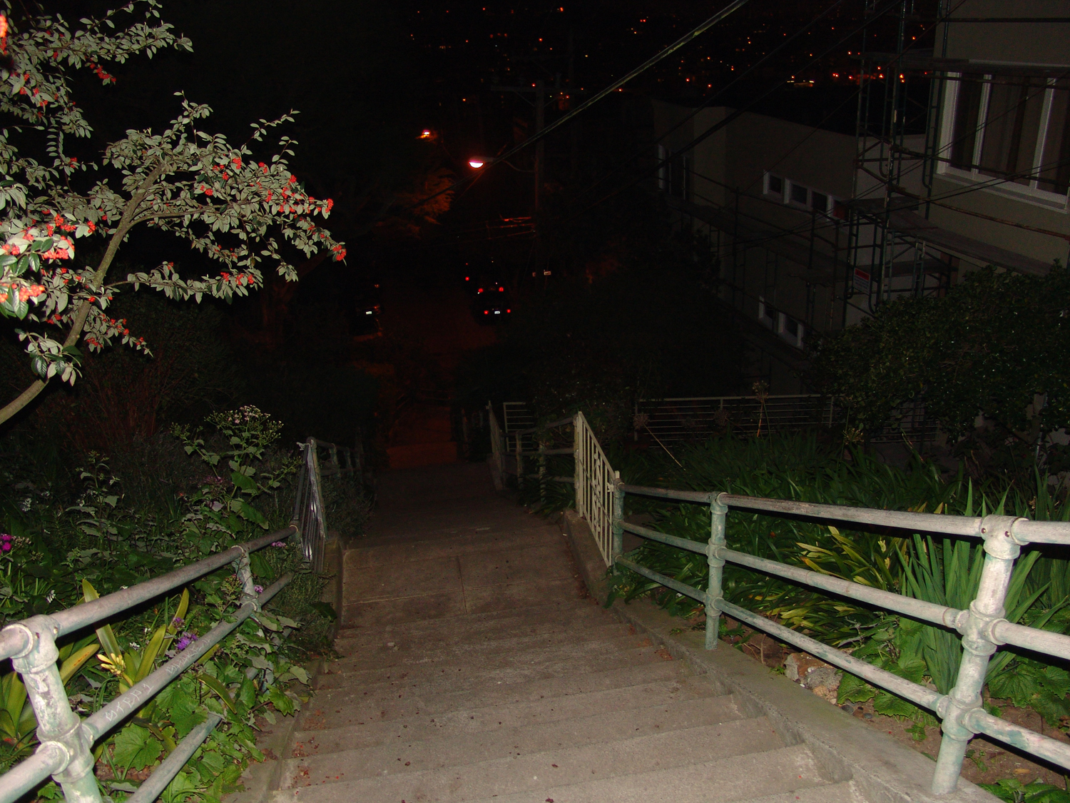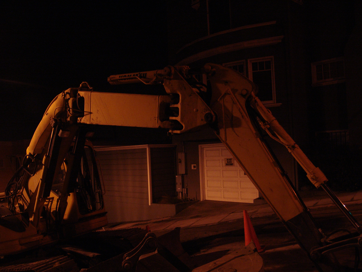 As I was wandering around my neigborhood, I was struck by how different it looks at night. I walk this way fairly frequently, and thus don't usually notice my surroundings. The cranes looked like monsters having a rest from battling. The dark paths and secret places became much more menacing, and the lure of lighted areas became greater.