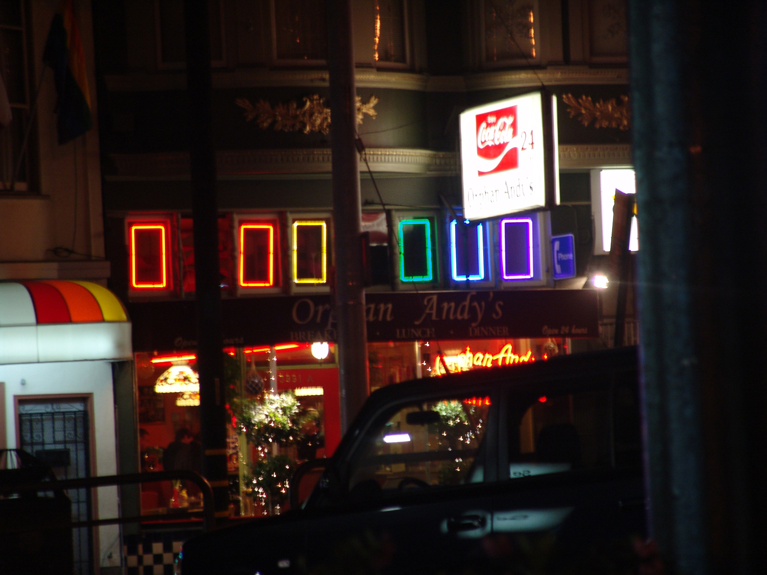 The neon lights caught my eye as I got to the Castro. They are so pretty, trashy but pretty. I didn't colour correct any of the photographs, because I really like the orange cast to them. I had wished the images of the city came out, but I actually like the close up shots of everything. They are given another level due to the intimacy with the camera.