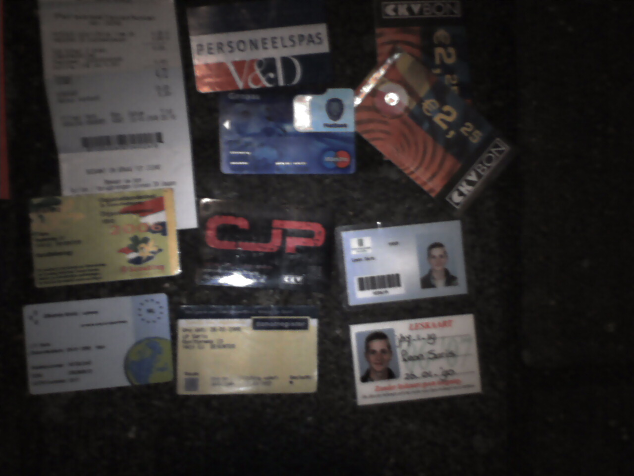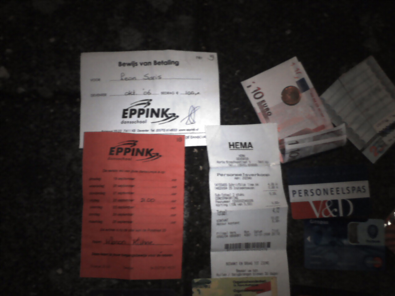I think that if someone would see my wallet I think he/she must think I'm one of the 'normal' guys. I go to dancing lessons at Eppink (everyone does that) I have nothing special in my wallet.
