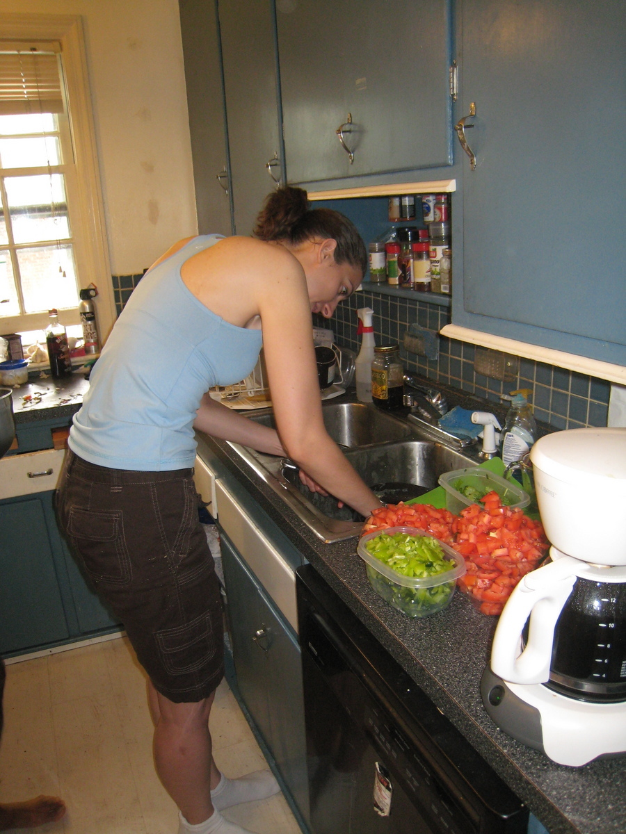 And piles of chopped vegetables. It's important to have the food pyramid represented properly...