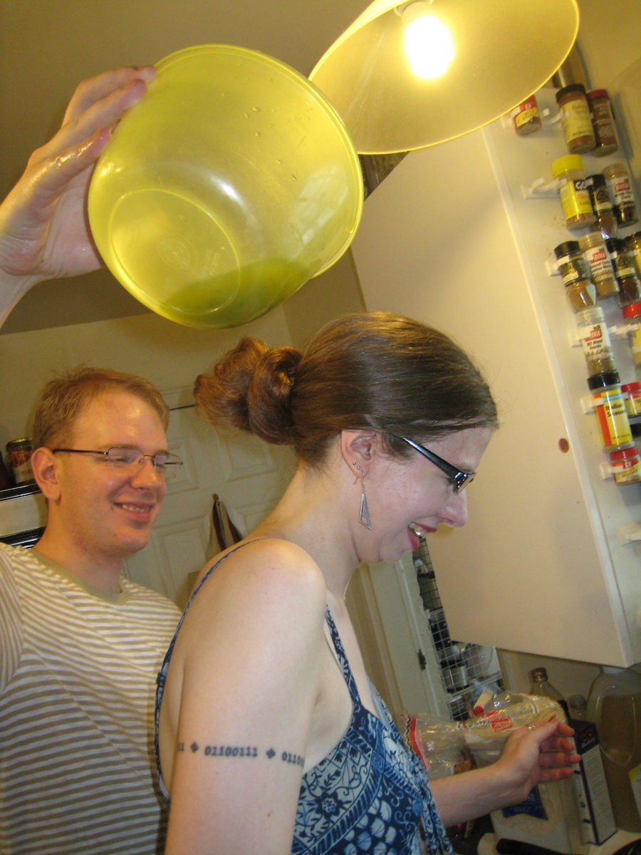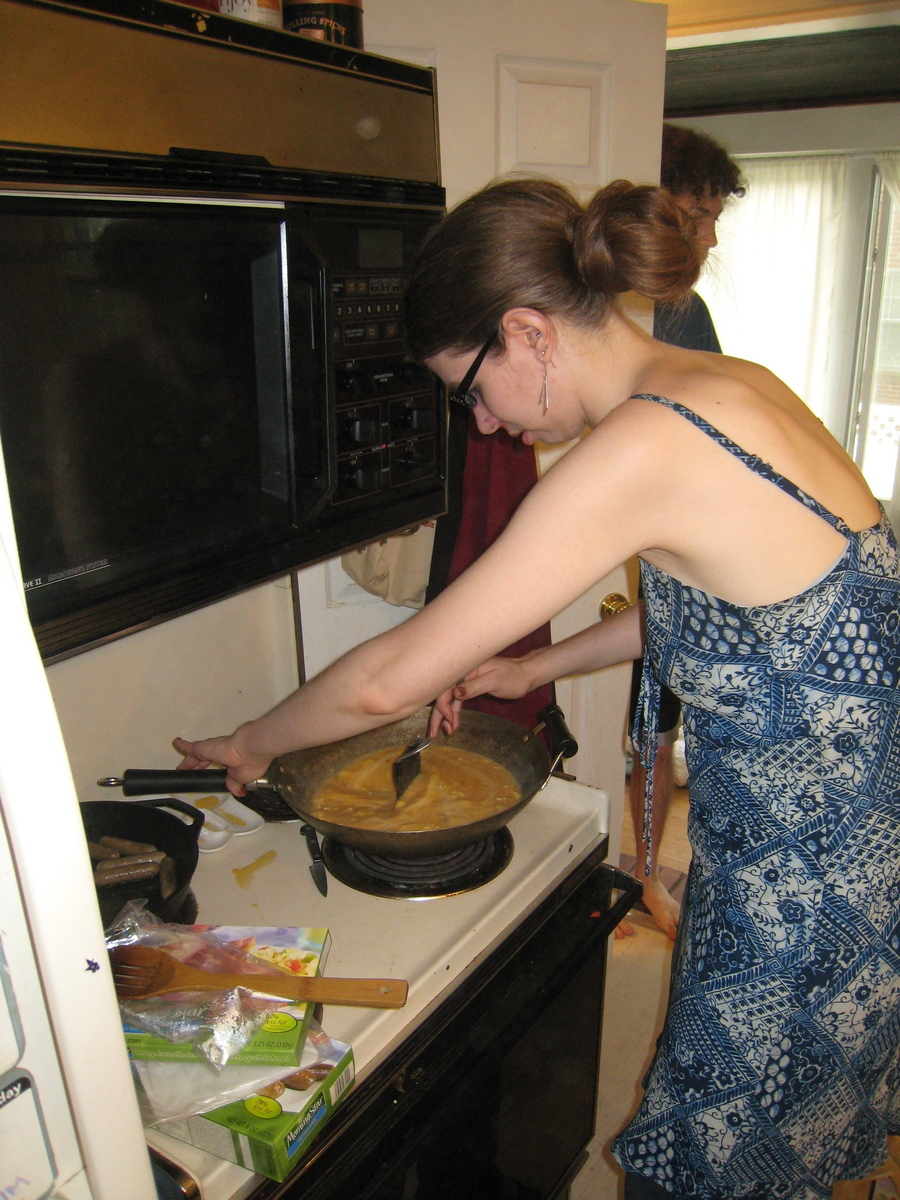 July 27th, 2009 1:16 PM / Location: 38.976306,-76.93598Seeing how this task was pretty daunting to begin with, we decided to add more daunts by doing it on a grand scale. The setting we chose was the WarMice July 4th House Party, which has a history of praxis. This year there would be 50 people attending, and they would all be very hungry, so a six-dish breakfast seemed to be just the ticket.