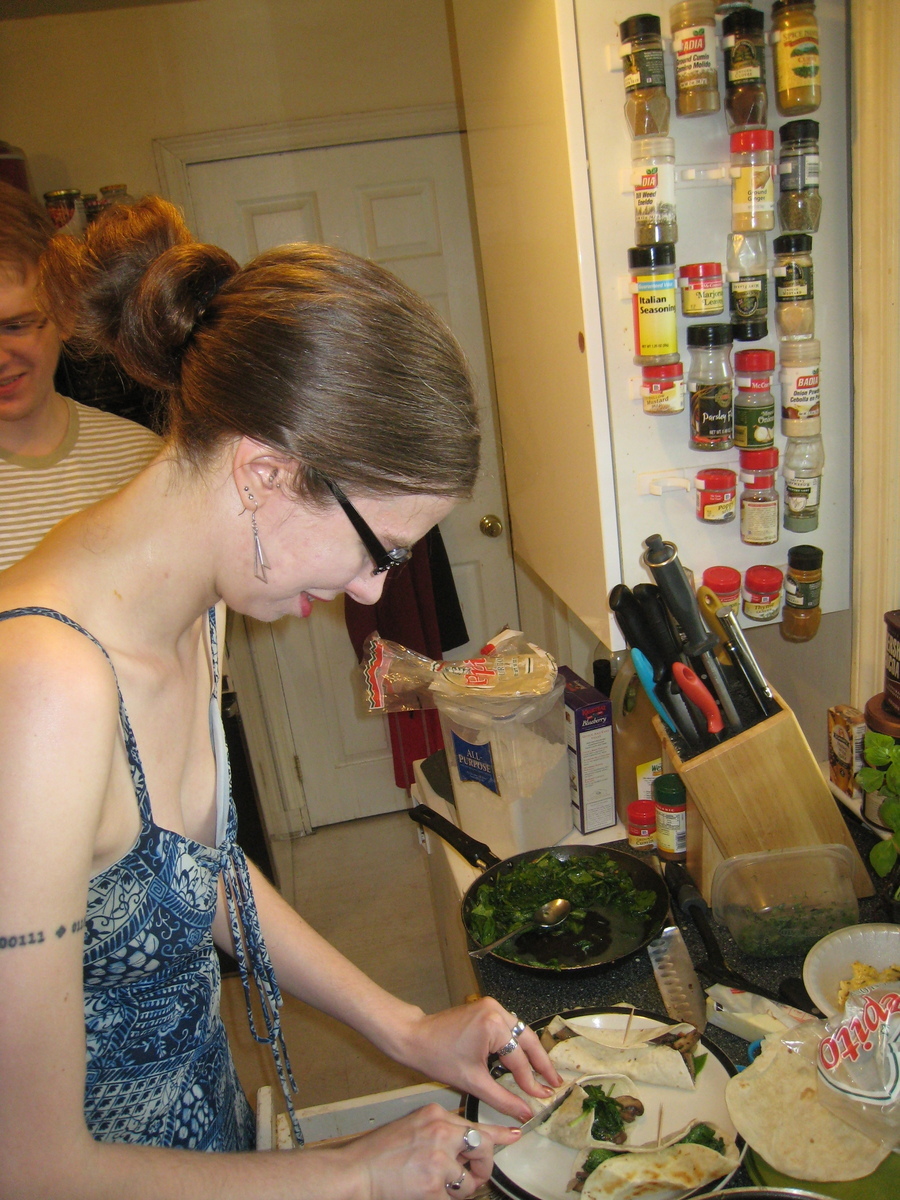 Spidere says: "Delicious. Oil and butter make for a sweet quesadilla. The baby portabello mushrooms in particular have a beautiful texture and taste. Again, the eggs keep this in the realm of breakfast, but I can feel us moving towards brunch.