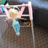 I have this babydoll her name is Tracy and Santa came and I got a stroller and a high chair and a babydoll bed and swing. And the swing is for the, is for Tracy's bed and for the high chair. But I have a barbie too. And she needed to get out. ...