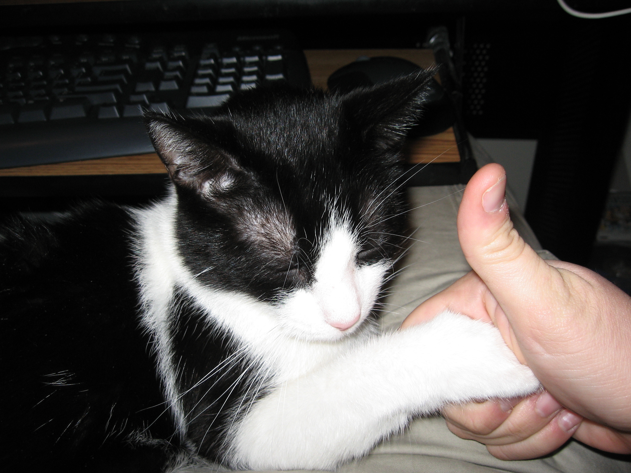 His lack of thumbs is why I won on default! As a consolation prize, I gave him lots of attention, though.