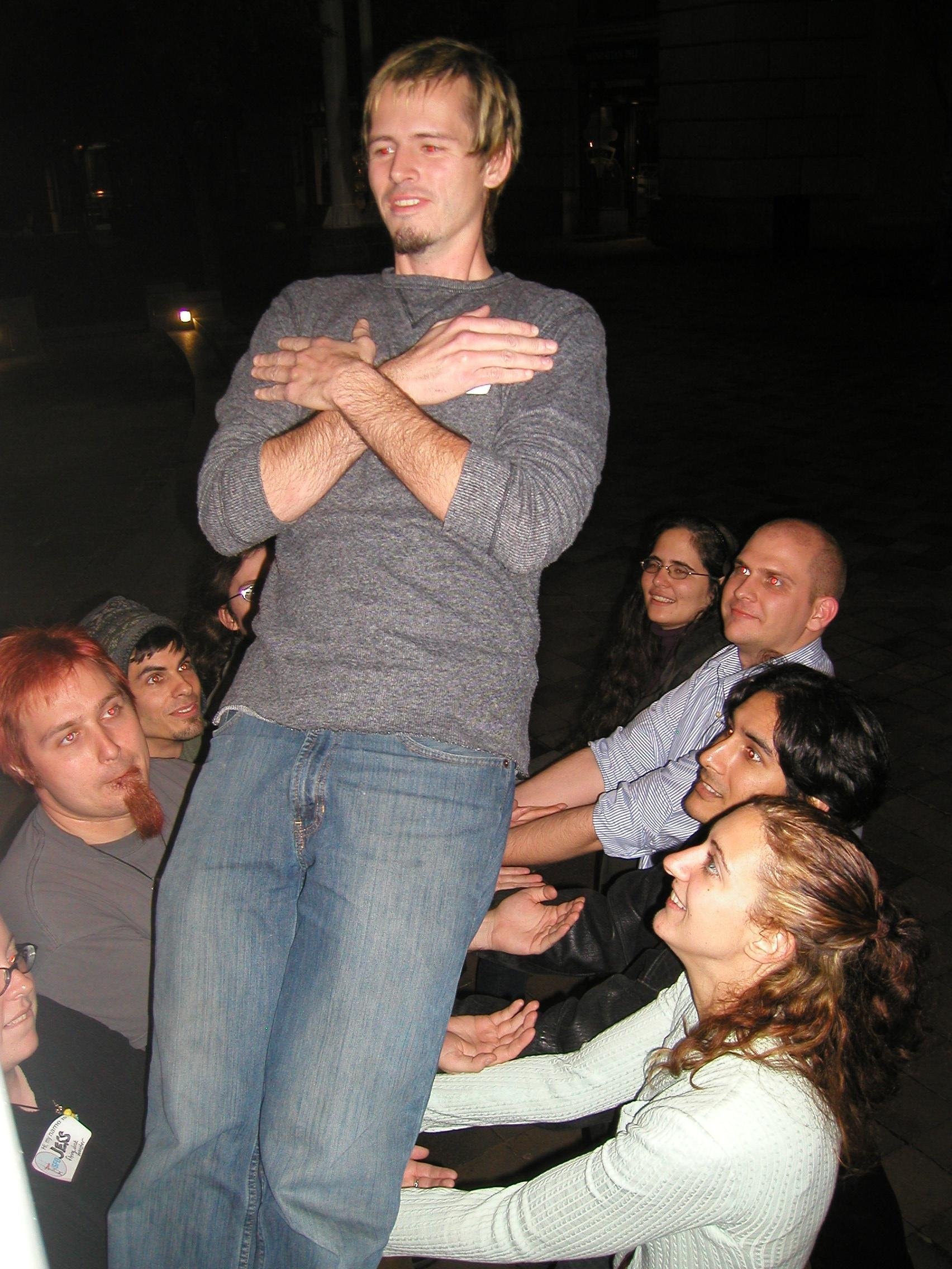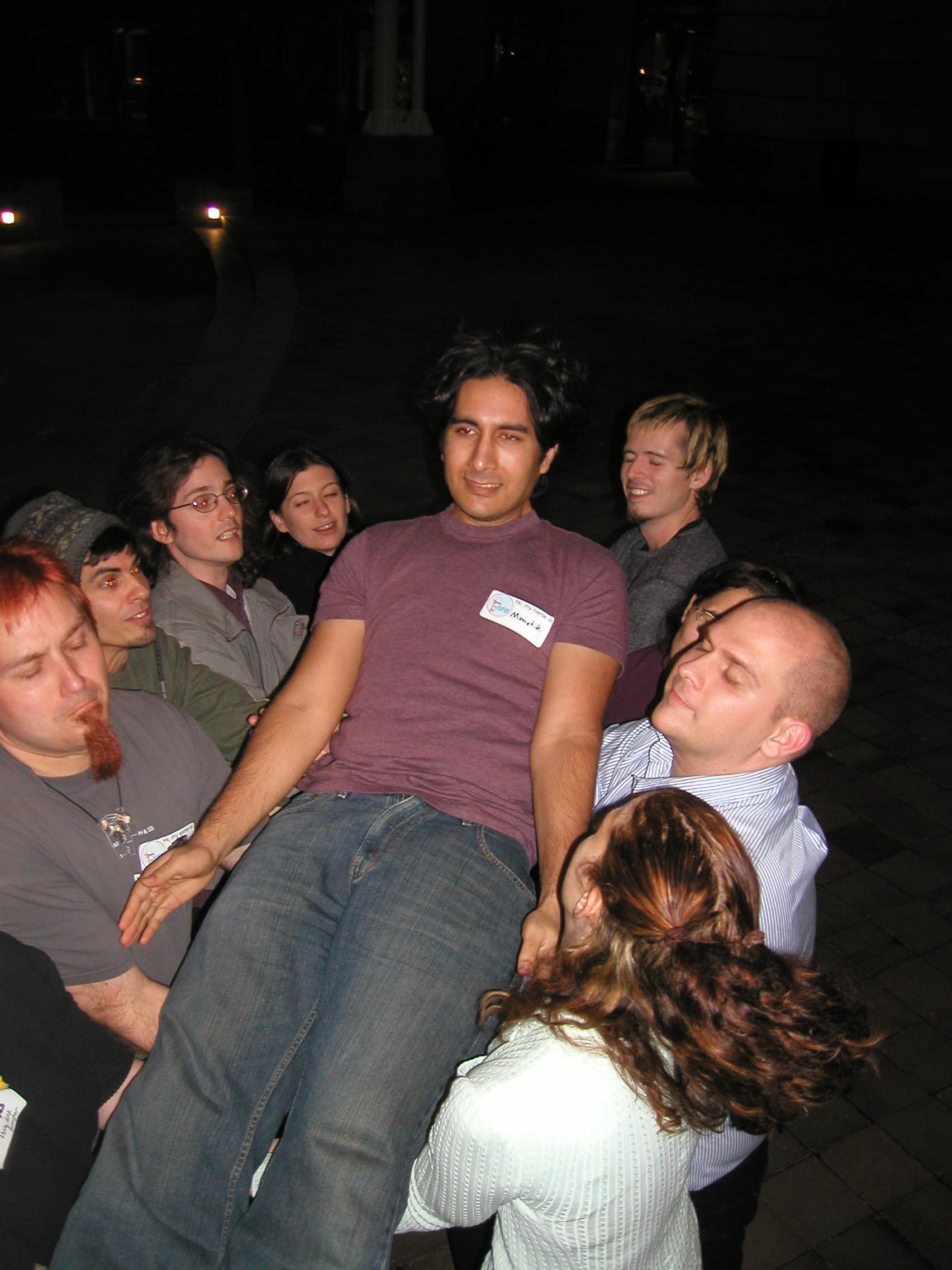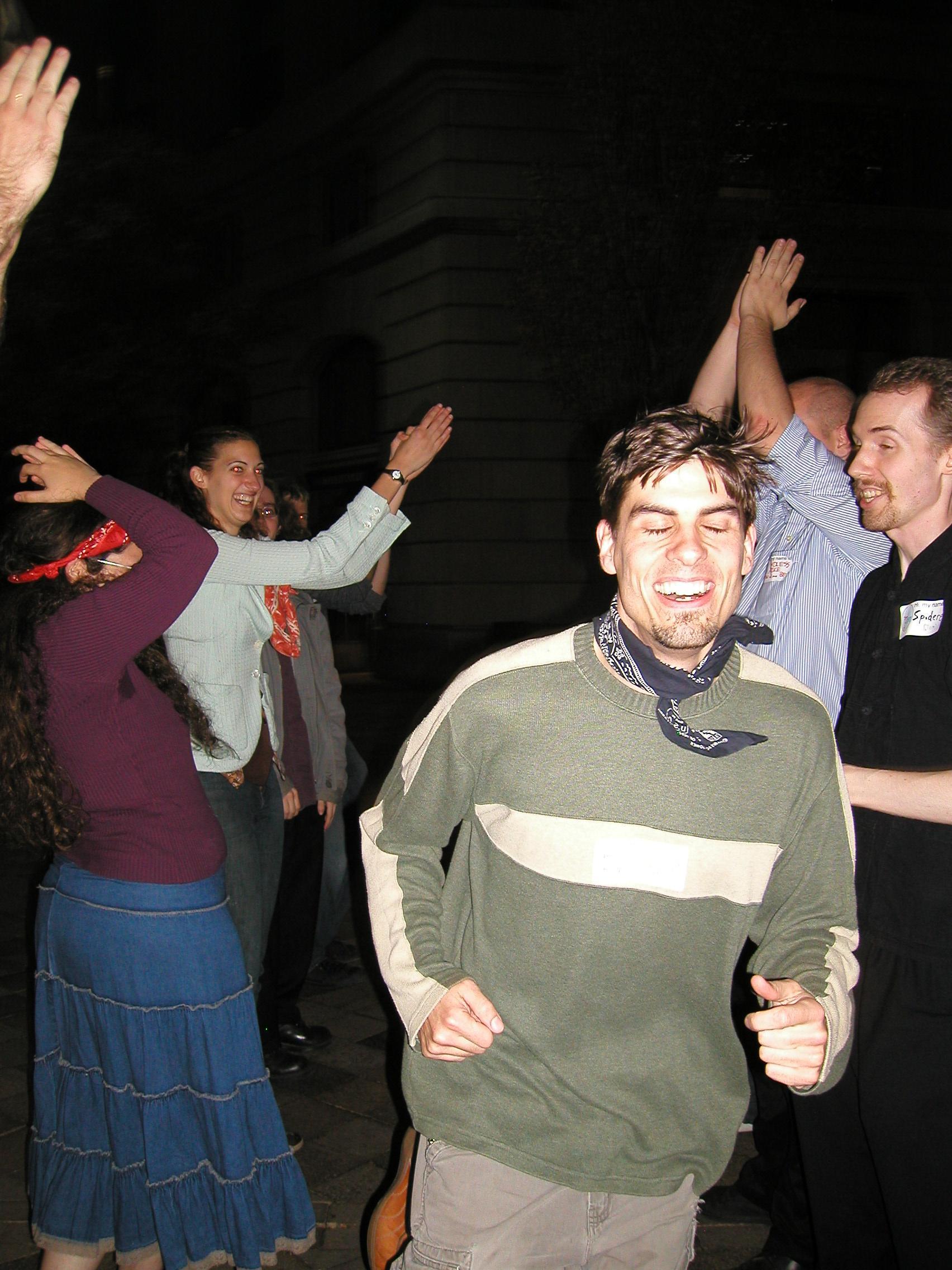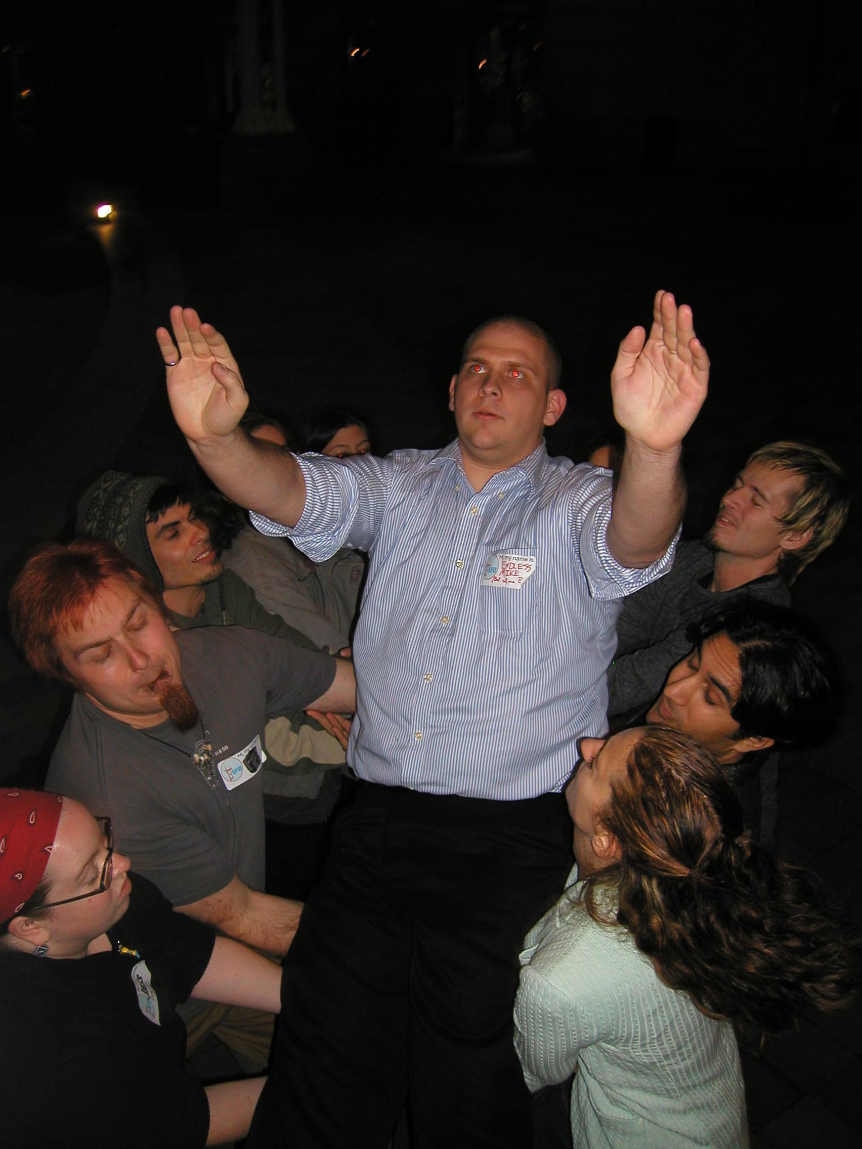 Also: although we'd actually first met some time ago, it had been ten years since I'd last seen Fizzbang. He was my guide for the trust run. We started off slow, and I definitely felt what everyone had talked about: constantly feeling like you're going to walk into something, worrying about what's coming up. But as we moved around, I realized that Fizzbang wasn't going to let me run into anything; by the end, I felt like I was really running, with total trust. I trust Fizzbang. I trust DC0.