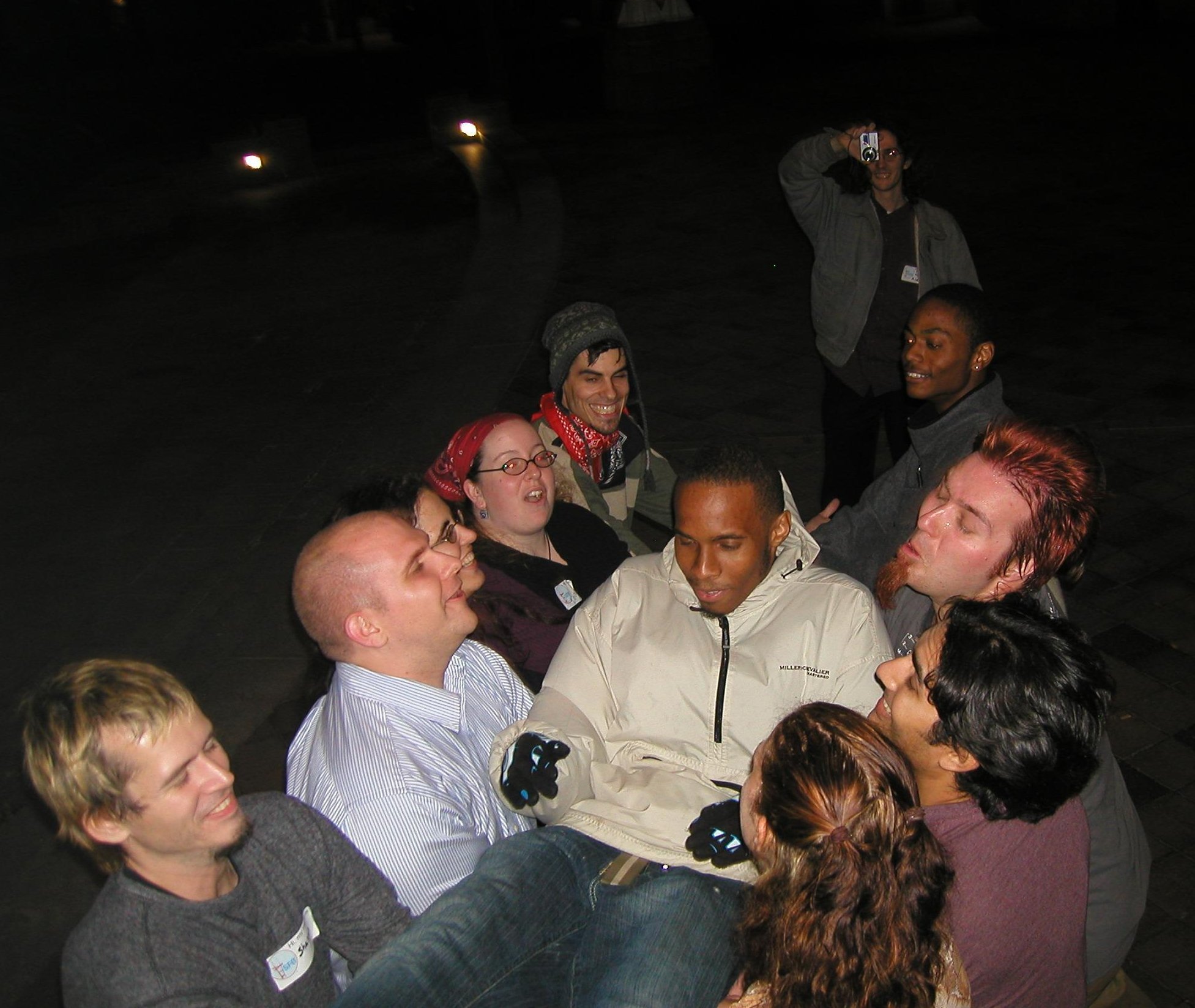 As much as I despise trust building exercises as a class of activities (second only to icebreakers on my list of artificial social interactions which ought to be driven from the face of the earth), this is pretty interesting. Bringing in strangers off the street makes it all the better.