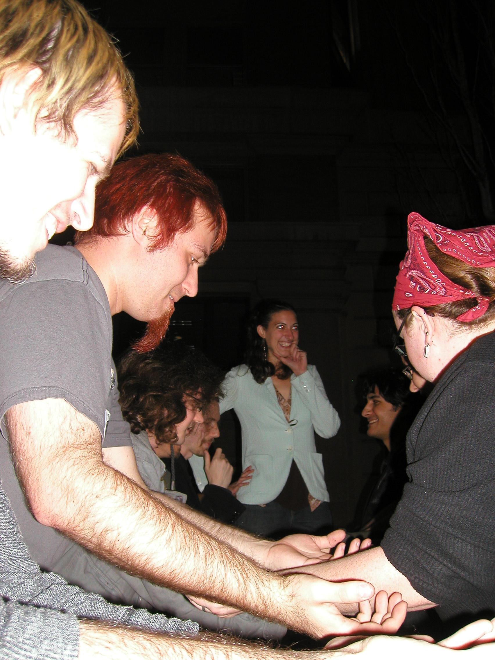 I'm glad folks like the blindfold's decoration - it seemed like the right thing for any Aesthematic to do. Between these trust exercises and the game of Calvinball (praxis documentation in progress) we played afterwards, that blindfold saw a lot of use!