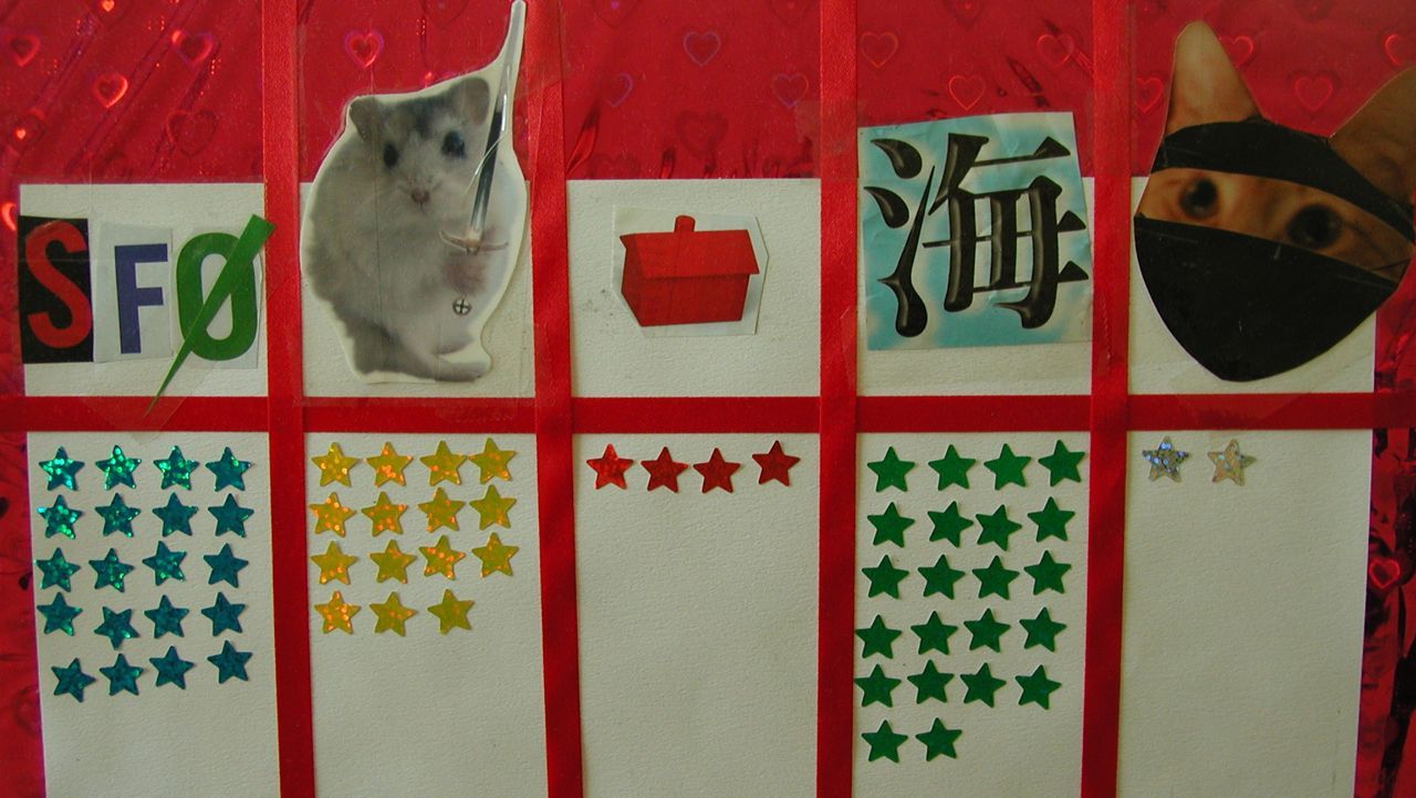 This is an early version of what I had in mind before coming up with the simpler single point structure articulated in the video. The creation of this and my original plan was lacking in organization and vaguely retro-active which meant that it made no sense and resulted in imperfect, yet not wholly random, sticker allocation over points.