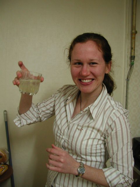 The drink was originally 3/4 shot plum wine to 1/4 vodka representing the success of the Japanese and it was hideous. At EOS' recommendation I swapped the ratios and added lemon juice. That was slightly less hideous.