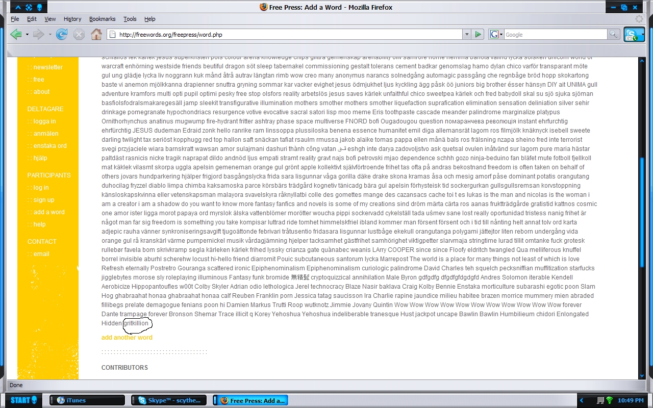 INSTRUCTIONS: go to freepress and add your character's very own word.