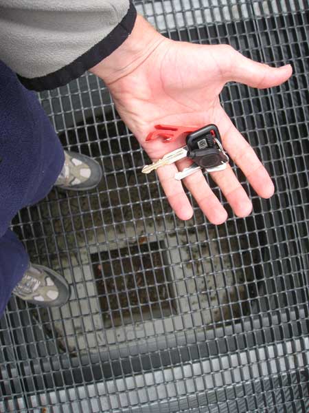 Every work day, as I walk to or from my office, I pass over a metal grate in the parking lot. I have no problem walking over it, but I fear dropping my keys down there so much that I clench my keys tightly in my hand. I find myself doing the same thing when I walk through the city... even if my keys are in my pocket.