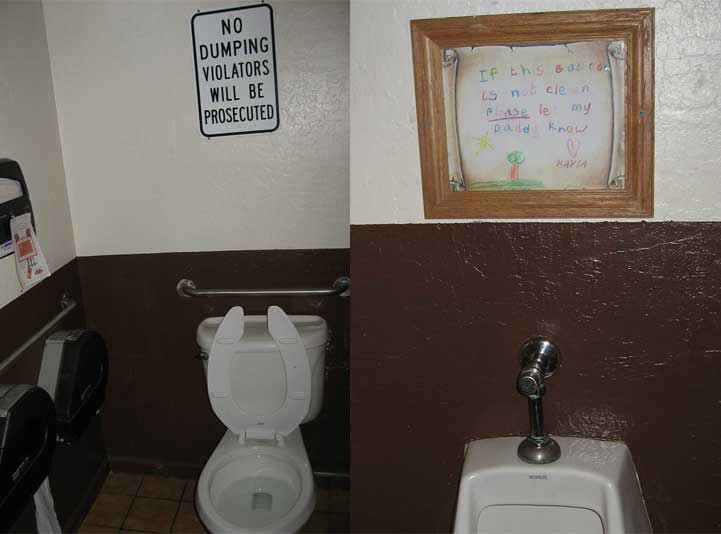 I've been holding off on this task, hoping to stumble on something remotely interesting. It hasn't happened yet. I did, however, get a chuckle out of the signs in this public restroom.