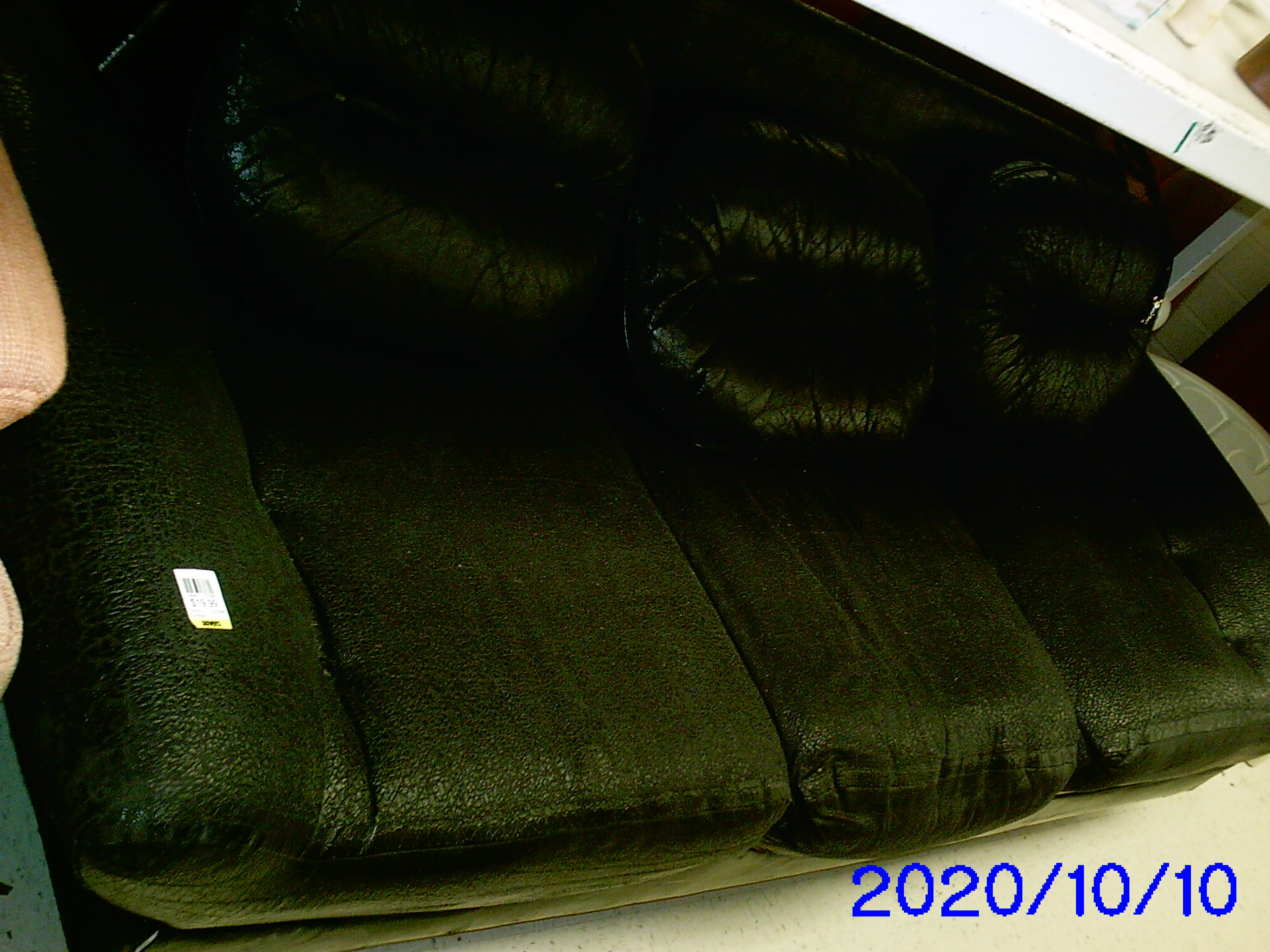 We got a small table, a curtain, a nice poster I'd inherited from a room mate who dissapeared, a throw rug, some books from my personal library. There was an awesome deal on a couch at our local thrift store. It was a wonderful black beauty (picture included below) for only 20 dollars. I was strongly considering picking it up for myself! But we had no way to carry it at the time, so we headed home to borrow a van, pick up my books and poster, and grab some twine and scissors (which I expected to need). You always end up needing twine and scissors. Luckily I had the high-quality, brand name Bag-O-Twine I'd gotten for Christmas ready to go!