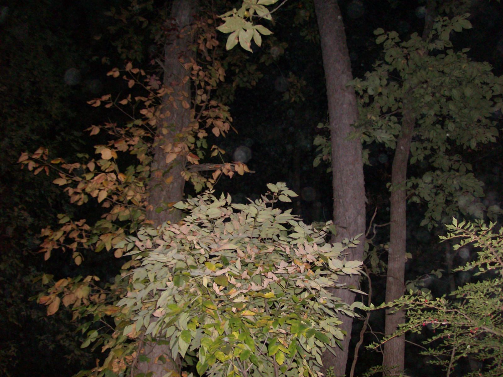 Ok, so technically this isn’t our usual neighborhood, but it was for the first weekend of October. We were performing at the Stronghold Olde English Faire, and as performers we got to sleep on site. As a couple of city kids, though Elenlin proclaims to be a country girl at heart, we couldn’t resist walking around the woods at night. Among things we learned, Elenlin has amazing nightvision, the night is full of magic (as stated by the little sister who went walking with us), the camera was able to pick up some amazing shots, moon and star light reflecting off the trees is awesome, cloaks are not only warm they give bonuses to save rolls vs. fear (yes, we are gamer geeks), and down state IL has some beautiful countryside.