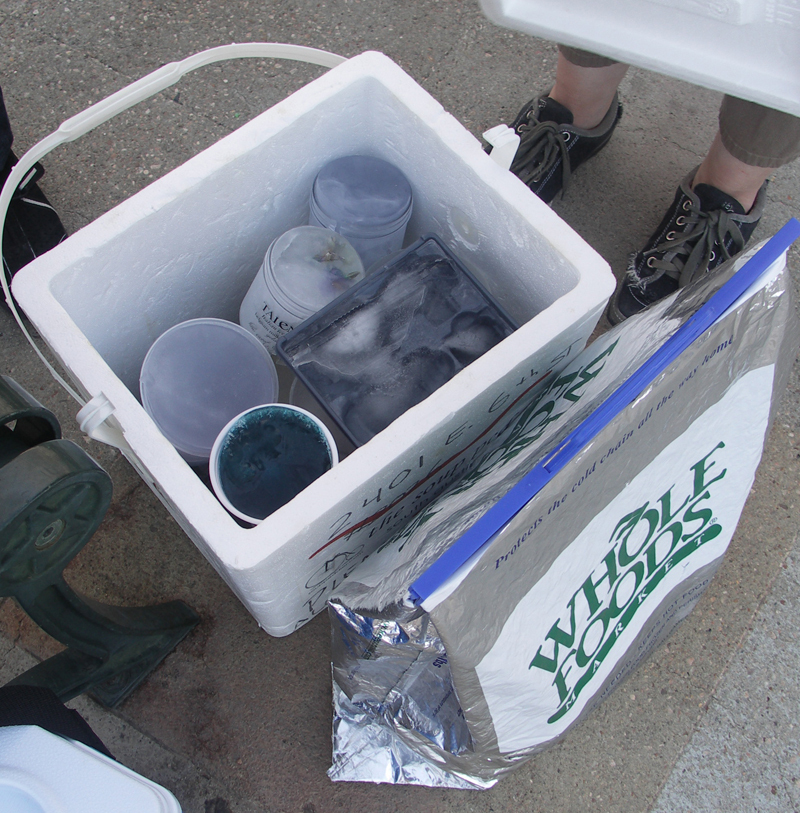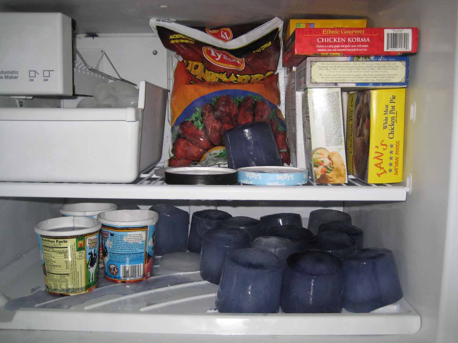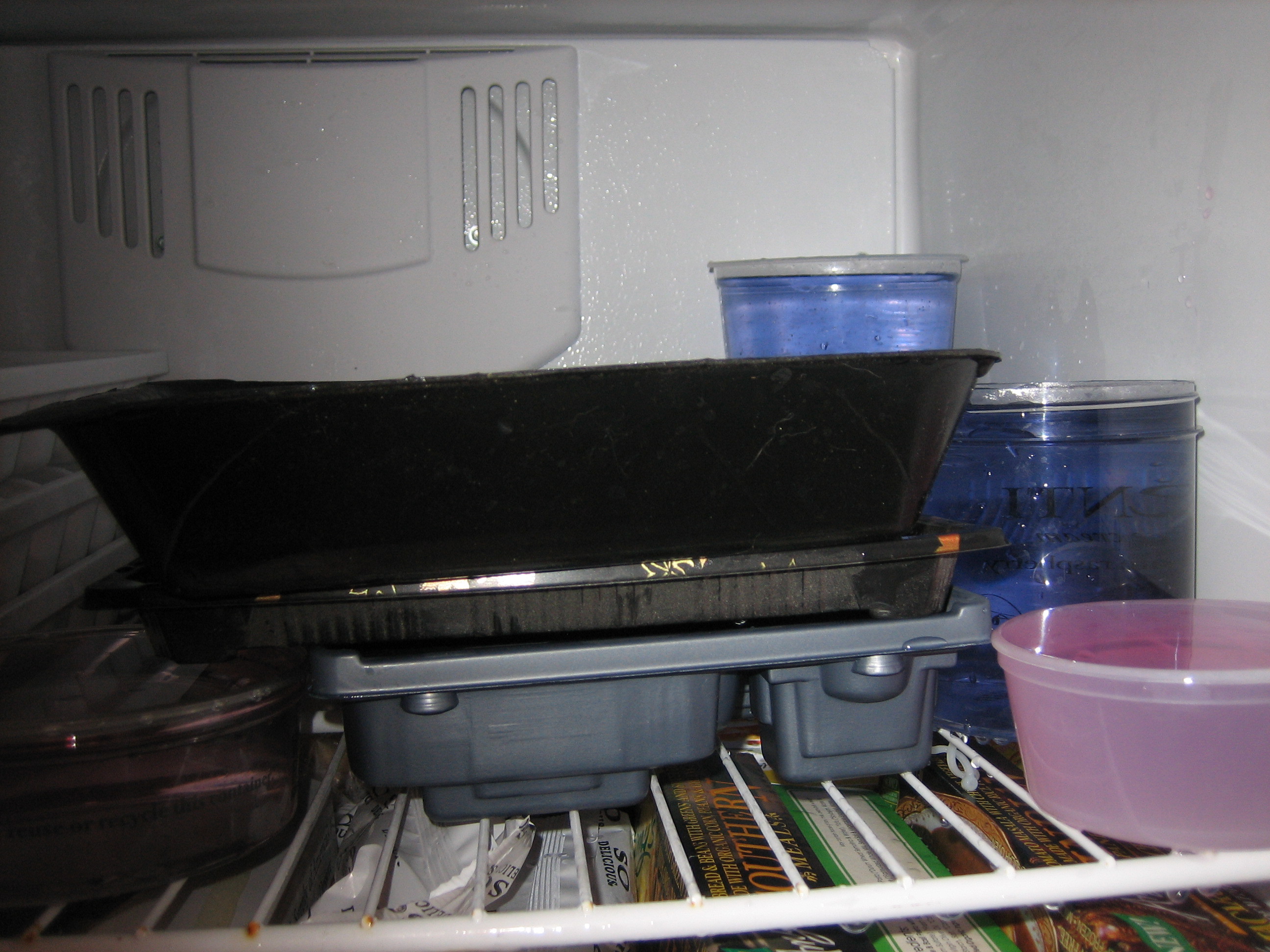You can see that some of the containers have already begun to leak, by the ice in the lower left-hand corner of the pic.