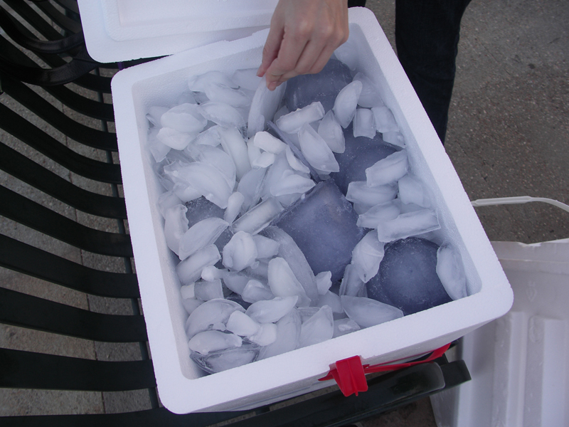Popping the ice out of the containers was easy at first - I'd just run them under some hot water for a while. I froze in batches, setting up a batch in the morning, harvesting the ice in the evening and setting up a batch for the night, then harvesting that batch in the morning and setting up the day's batch again. If things went according to plan, I'd end up with about 31 chunks of ice.