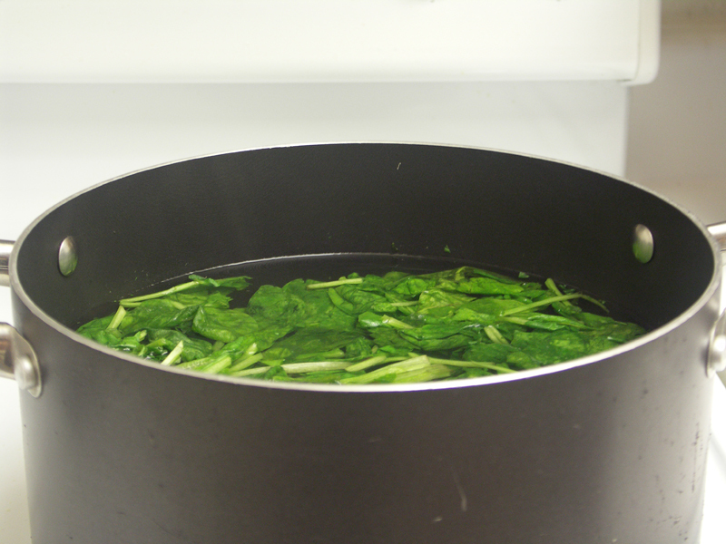 .Sadly, the color they got by boiling the spinach wasn't as pretty as they'd hoped. It seemed too yellow-brown. They added some blueberry juice, which helped a little bit.