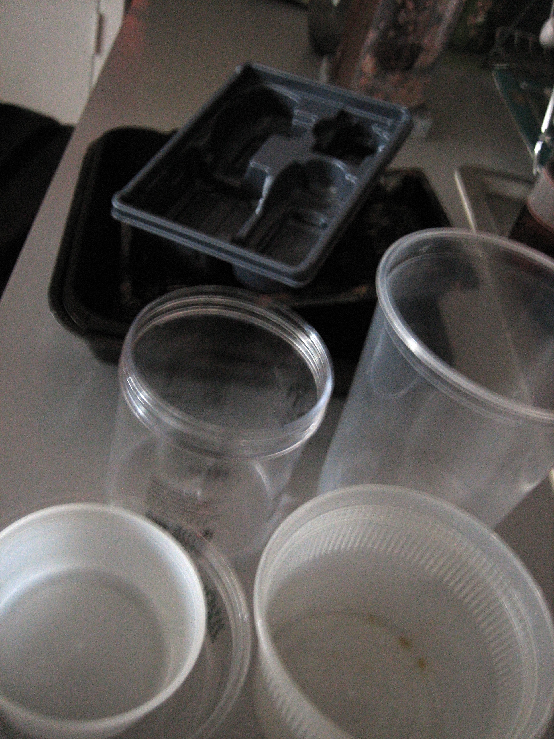 I started collecting a melange of plastic things to make ice in, and acquired some things to tint the ice with: