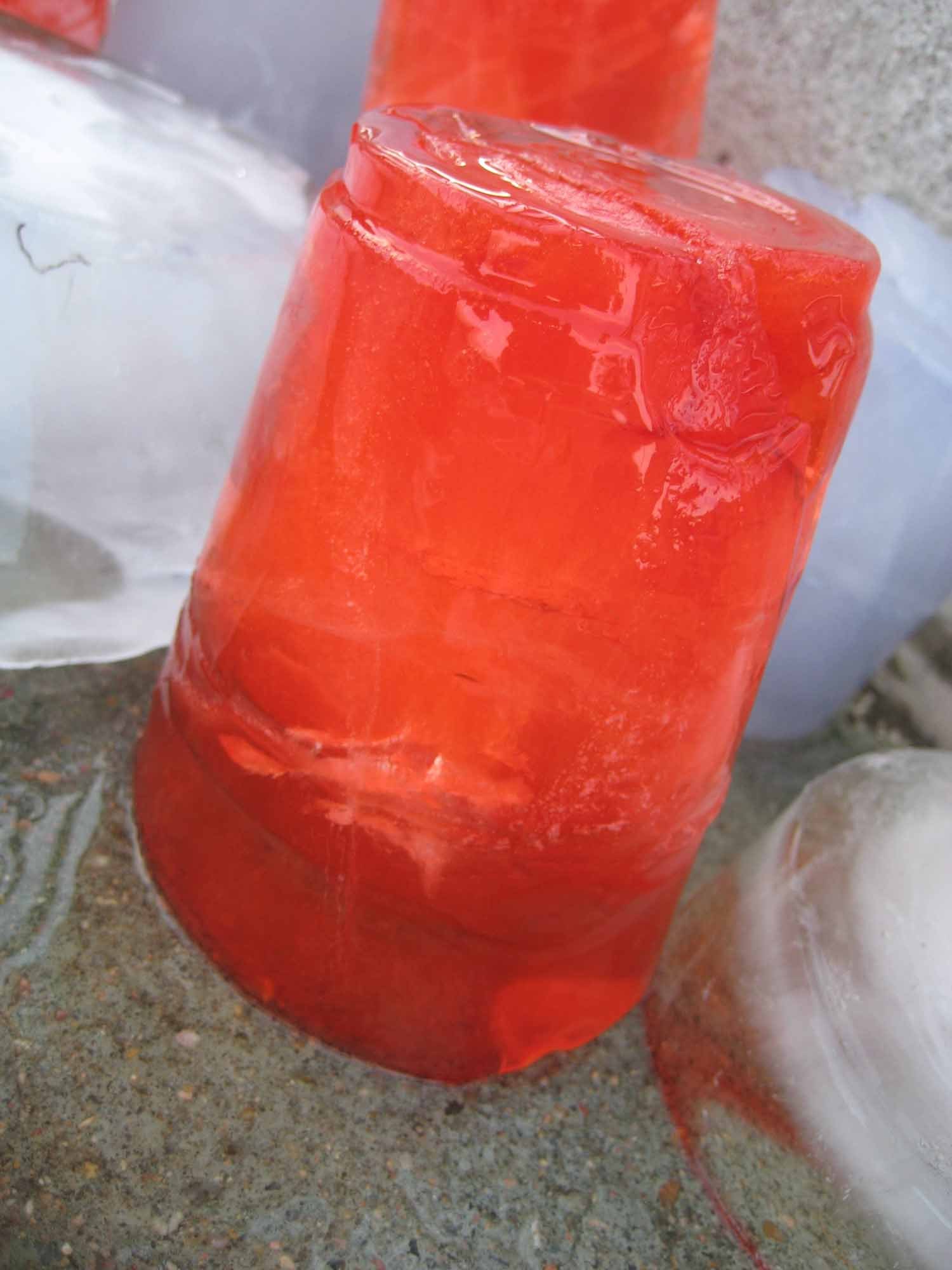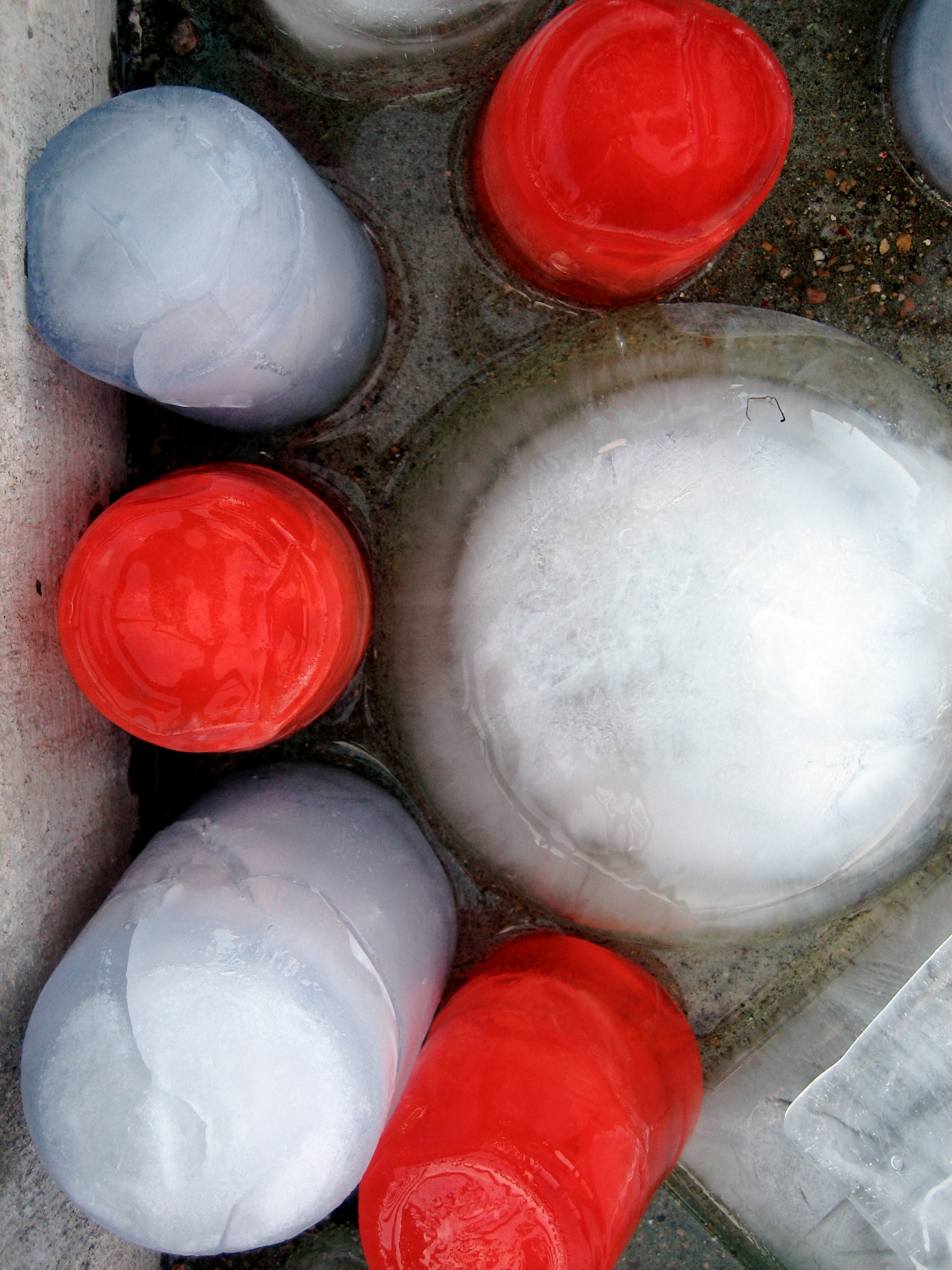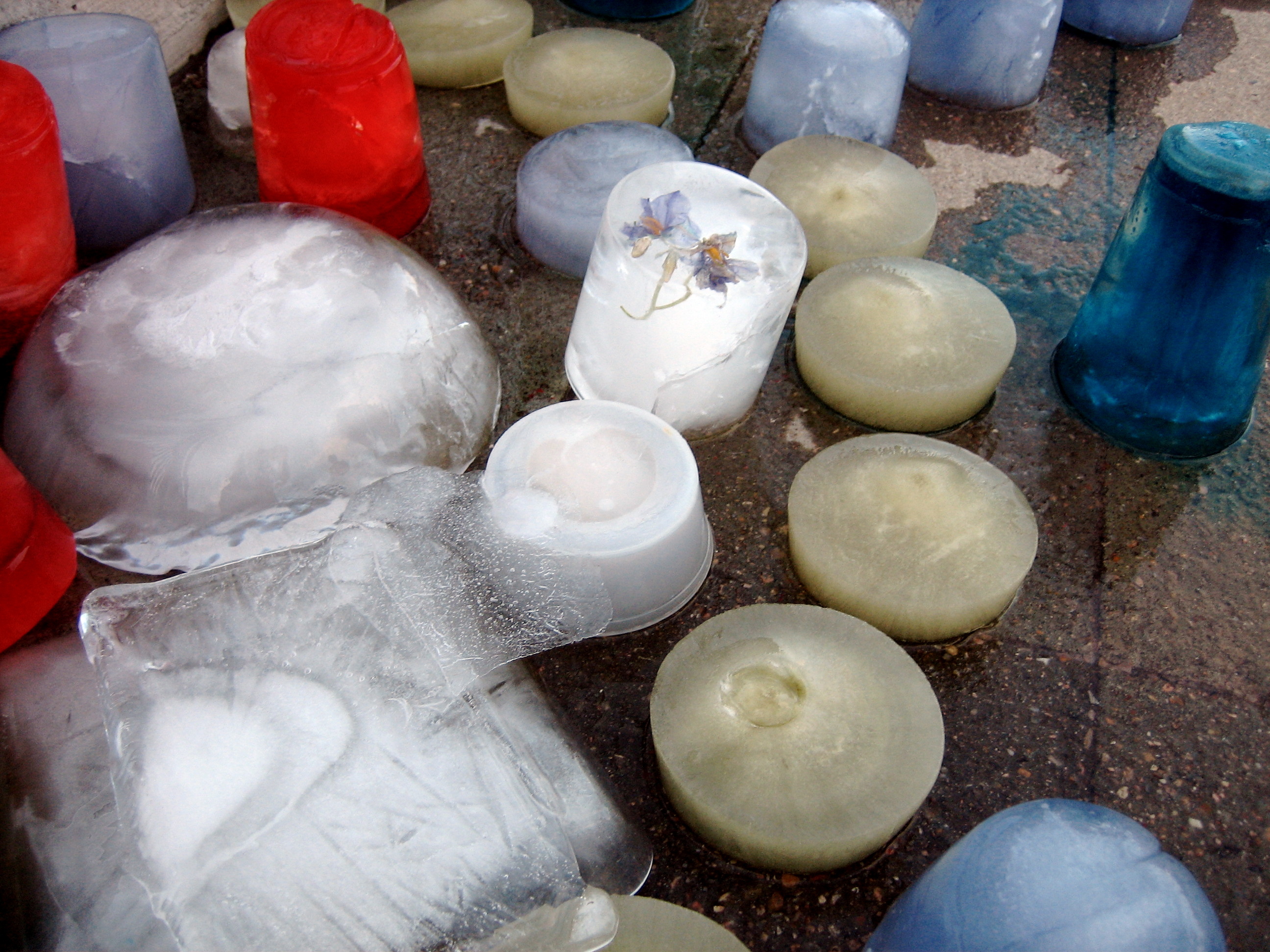 You guys really thoroughly explored what you can do with colored ice. Vote for Ice Flowers, and green vegetable dye.
