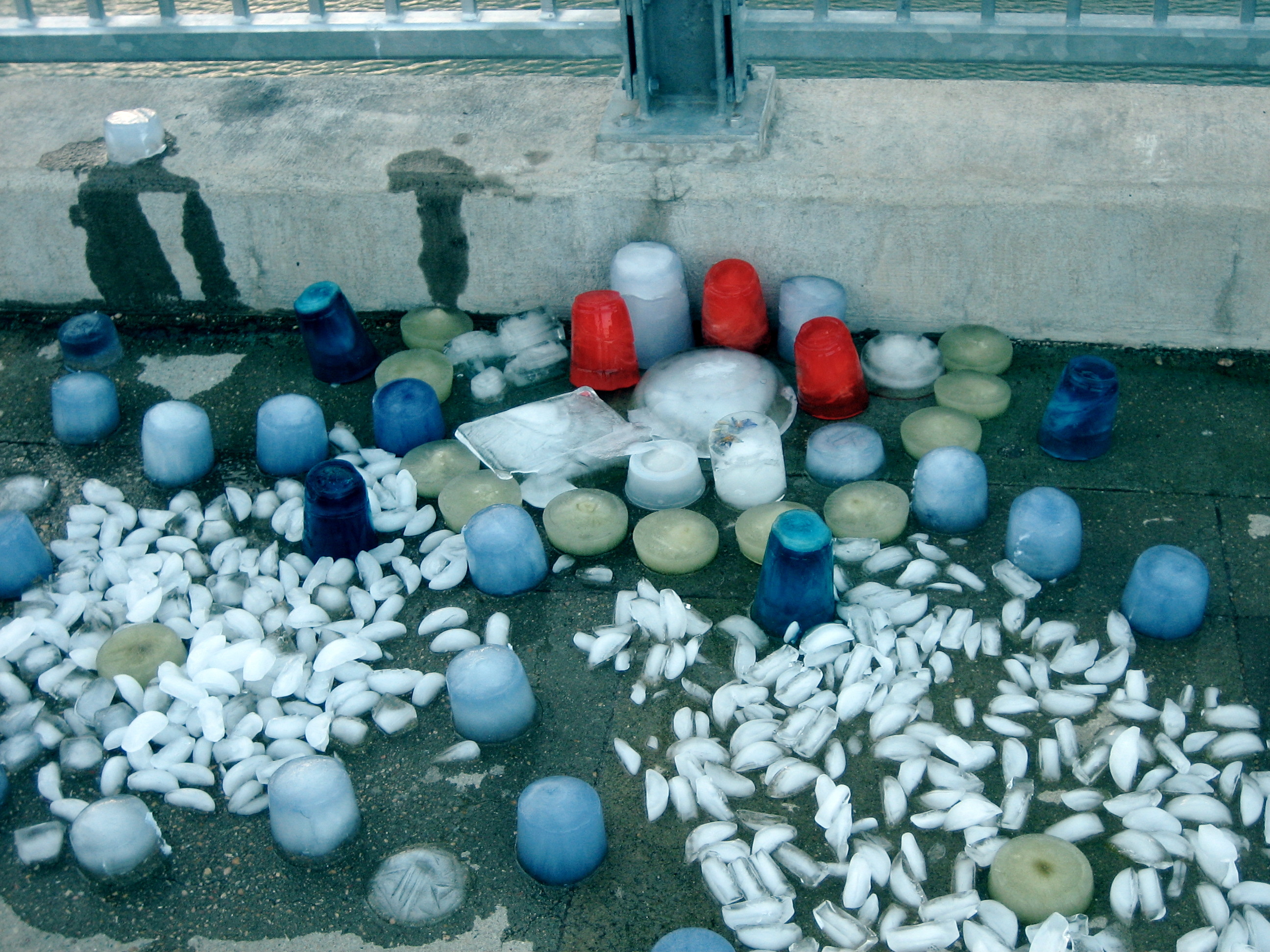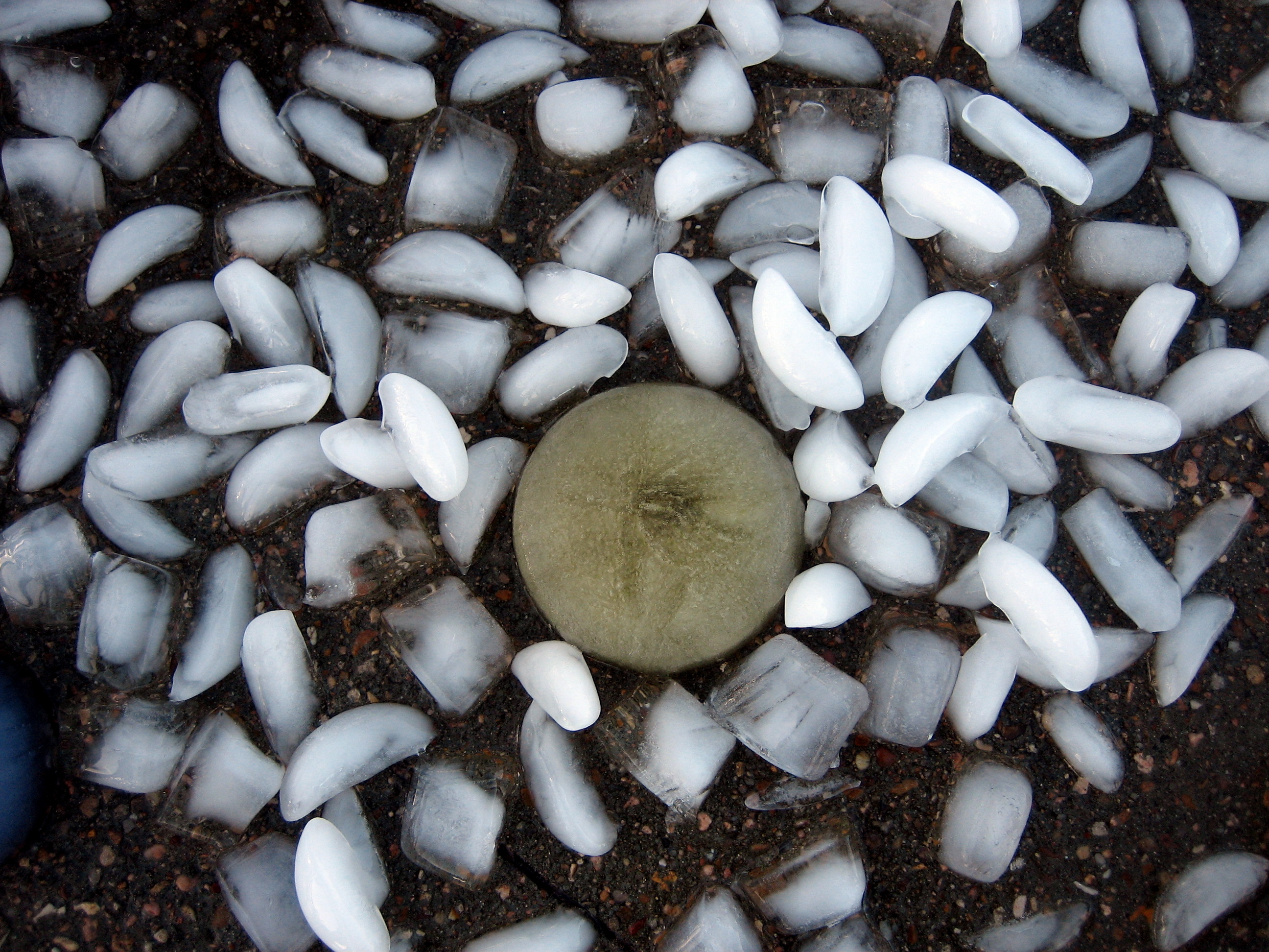 .Last of all we filled in some of the shapes with the smaller pieces of ice we had - these melted the fastest, and if you check our proof list you can see that these were almost gone by the time we left: