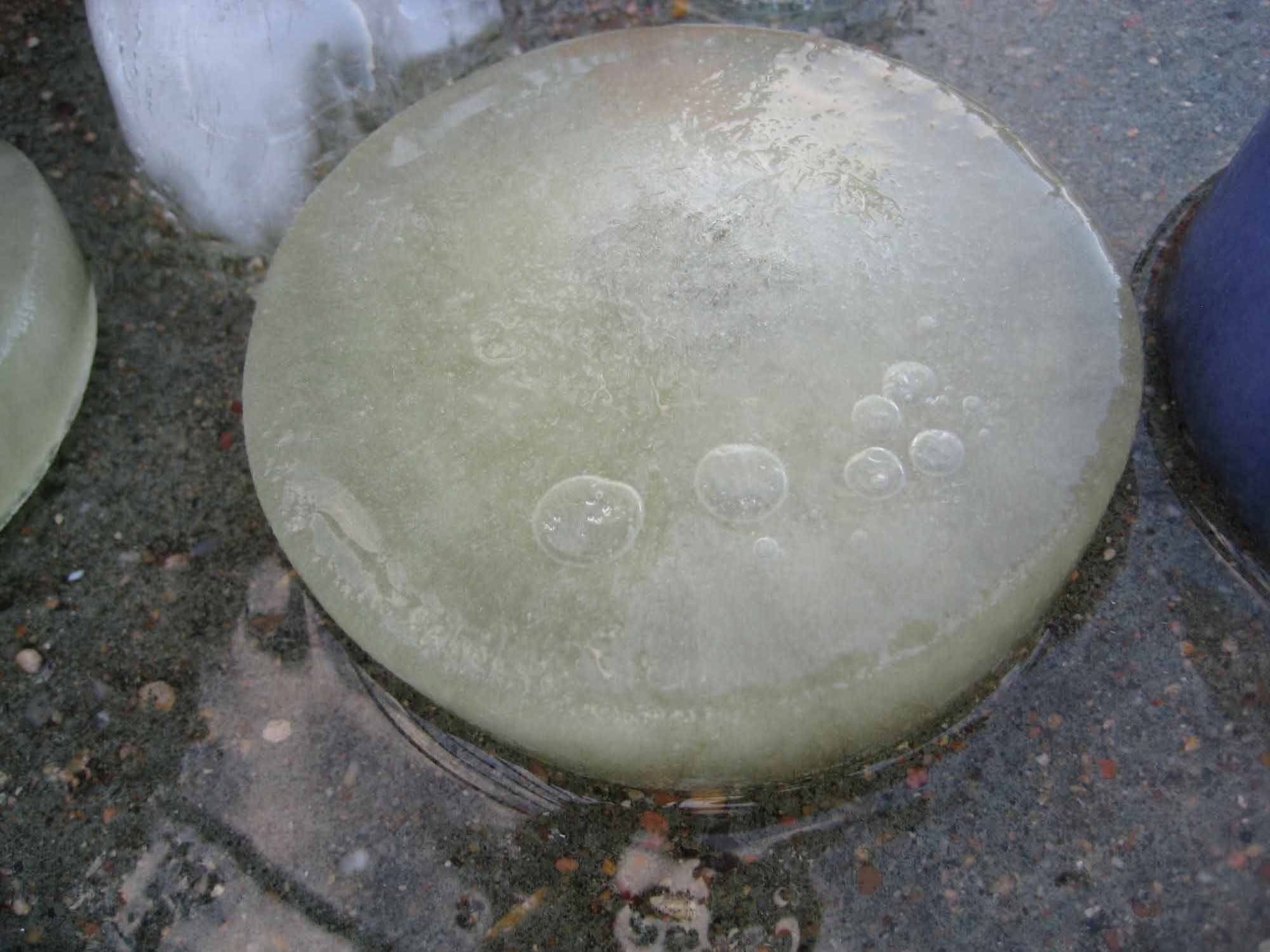 (The bubbles weren't quite as noticeable once the ice was frozen solid...but it looks almost like an eyeball at this stage!)