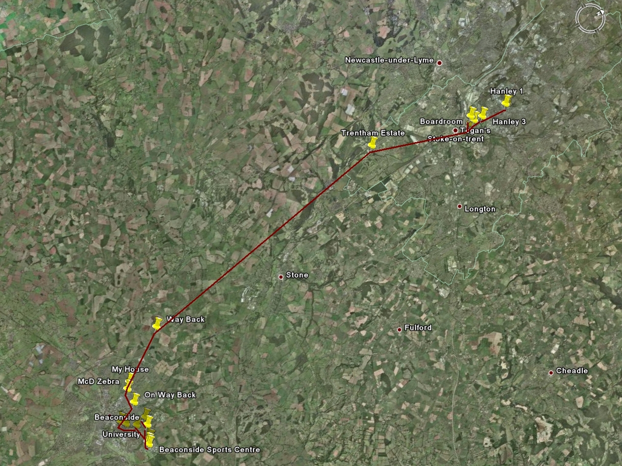 It's one of my favuorite numbers, and therefore the minute I used for my map. I have got some strange comments from my friends about my somewhat obsessive tracking of this Task - my phone has gone off at 46 minutes past the hour, every hour, for the past three days and no matter where I am I have got my notepad out and marked where I was at the time. My personal favourite of these was on the morning of the first day, where my phone went off halfway across a zebra crossing...