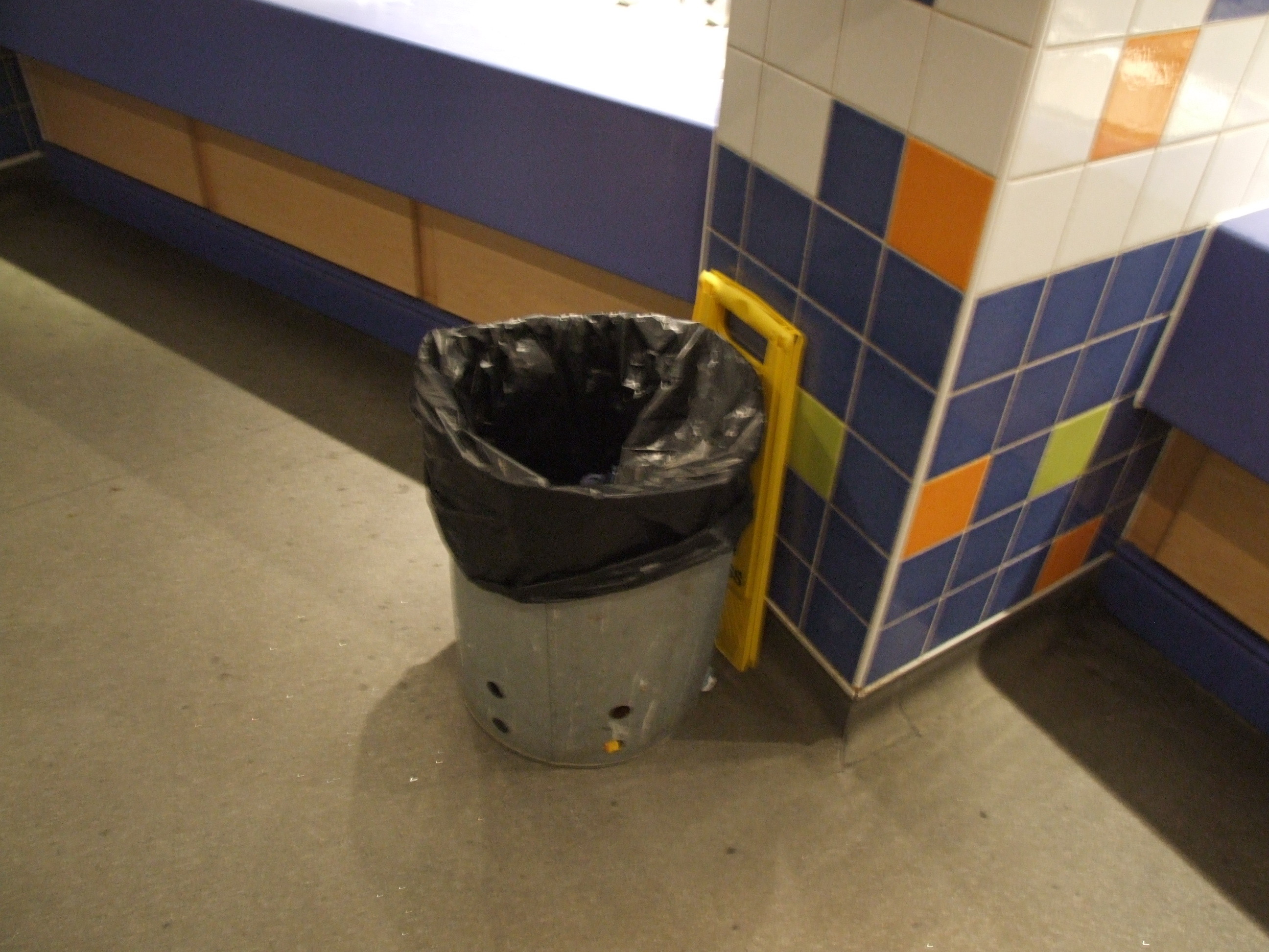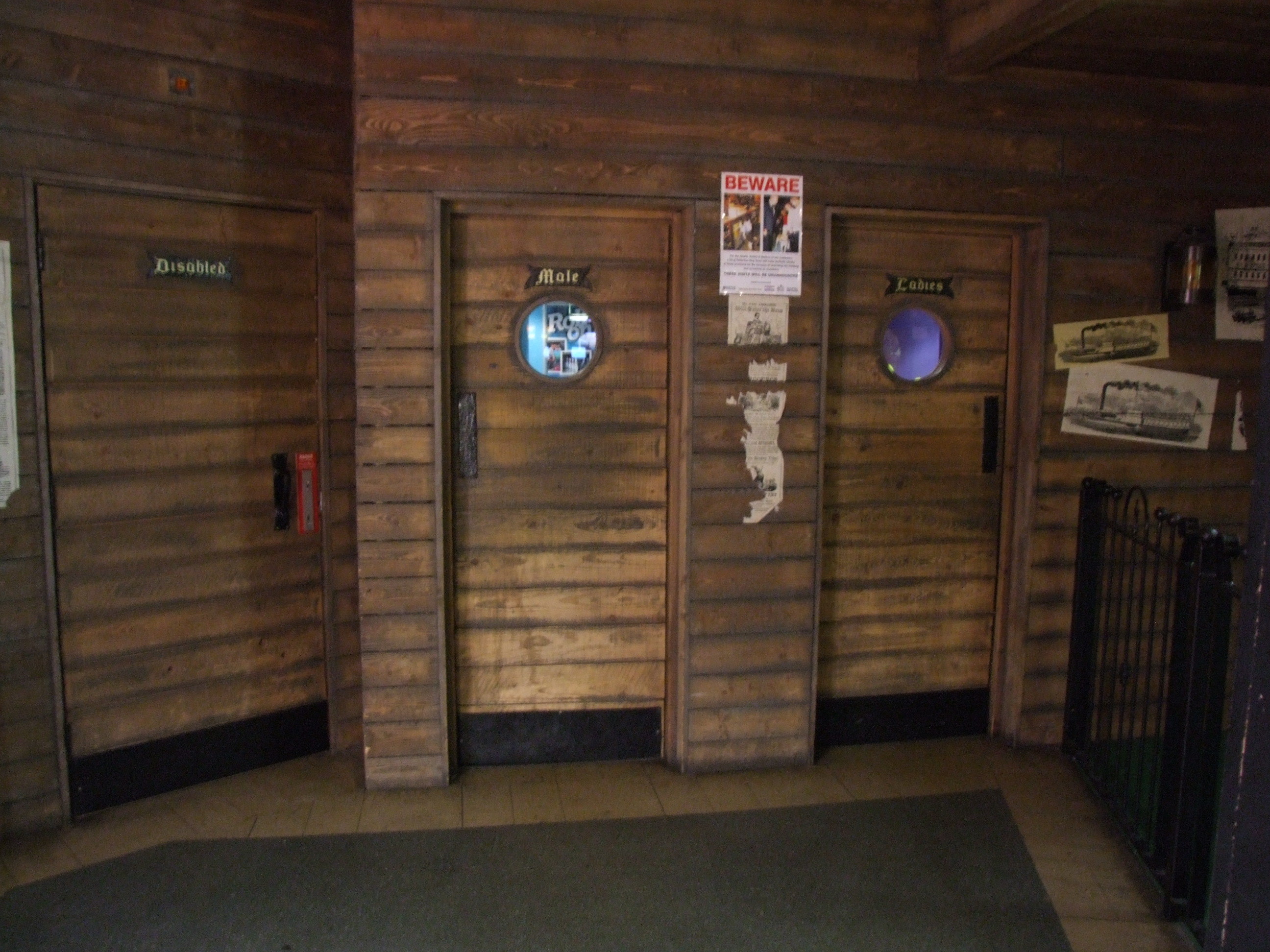 From the exterior, the doors match up nicely with the old-ship-stylee of State fair, and you would naturally assume that the design goes all the way through. But no! As soon as you walk through the door the entire world goes neon blue! And then after the ante-chamber the style changes again, to a more serene tiled look, standard in the mojority of toilets. I personally just wonder why they couldn't've kept with a single style...