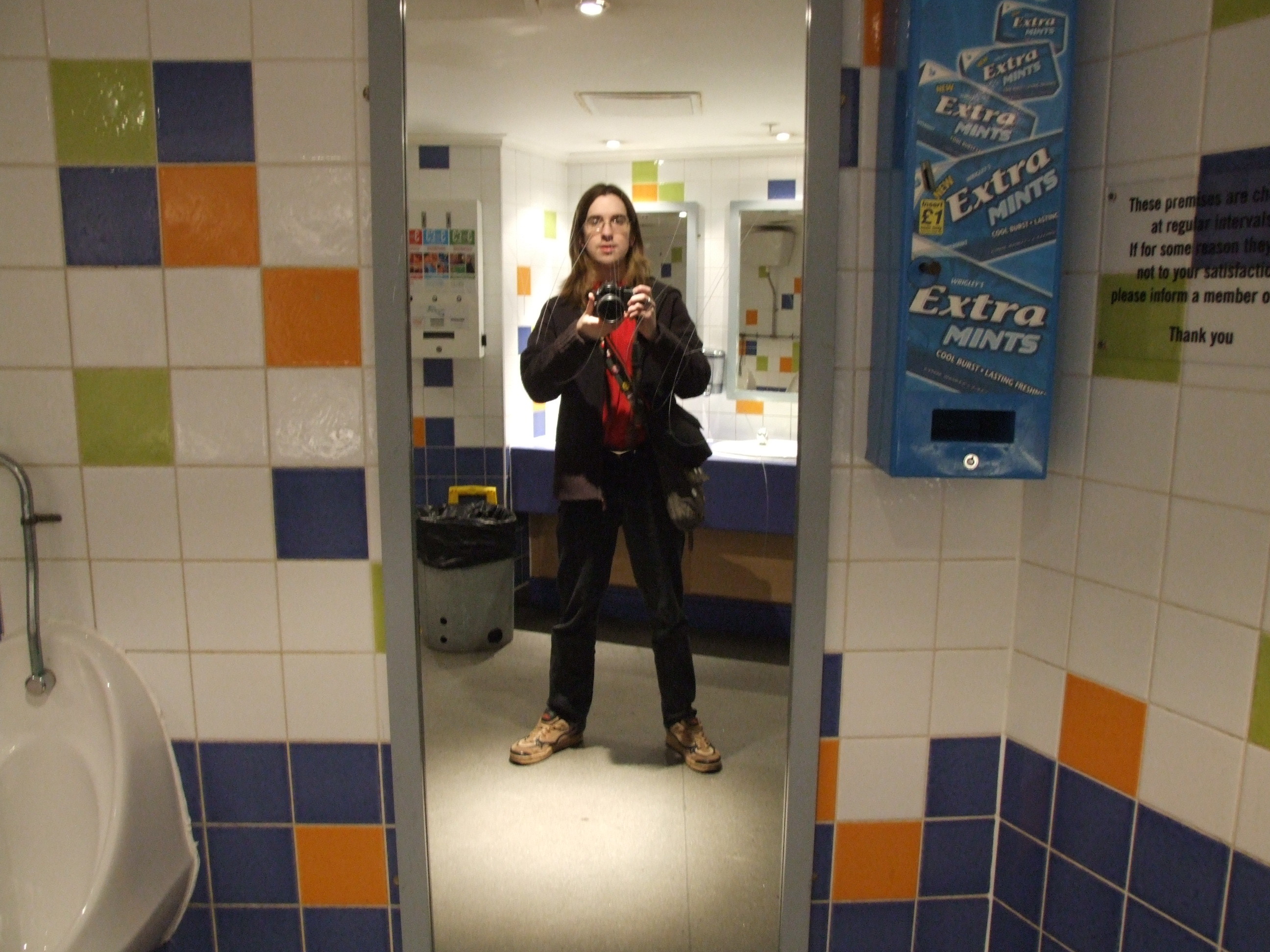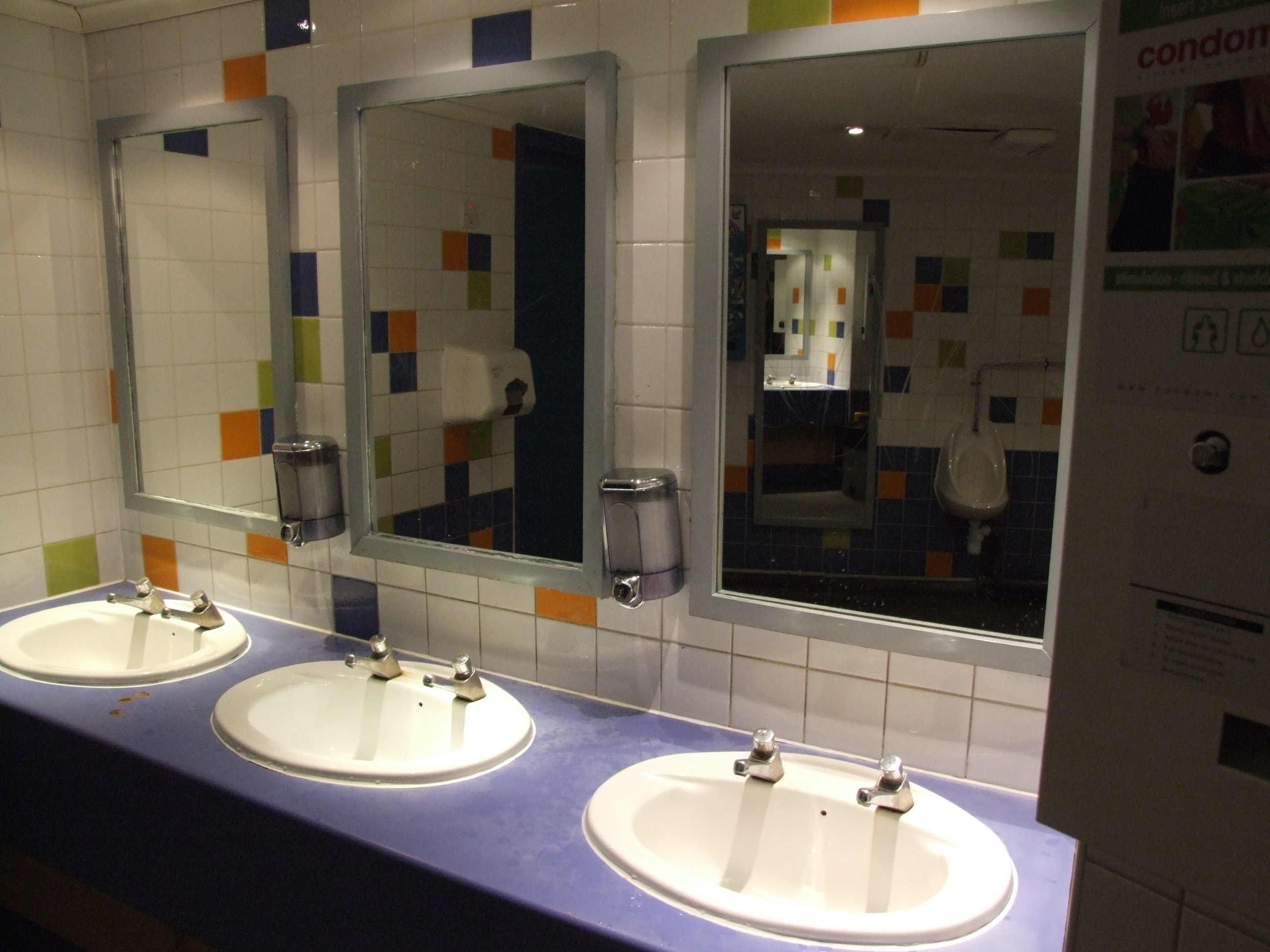 January 9th, 2008 10:37 AMThese are the men's toilets from inside State Fair at the Milton Keynes Xscape. Outside, it seems like a useful place to refresh one's self after a heavy bout of drinking and Dance Dance Revolution, and indeed it's useful for that very purpose - but then you look back at your experience and wonder, just what the hell were the designers thinking?