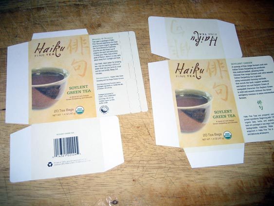 I put the original tea bags in the new box. I wouldn't want to rip off anyone! They might feel ripped off that it's not real soylent green tea though.