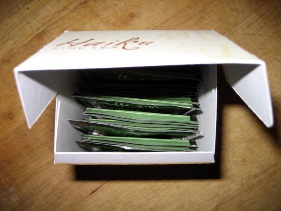 The new package is smaller than the original because my printer isn't big enough to print a 9 inch wide sheet of paper. Oh well, the tea fits, so it's not a big deal. Notice that I perforated the tab tear-off so you can really use this box.