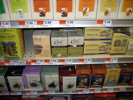 It was rush hour shopping when I did it, too. I went in, picked up a basket, and reached into my bag and put the package in the basket. Then I went to the tea isle, picked up a different kind of tea, examined it, then put it back, and put my box on the shelf. I was very sly. And then I took pictures. Yeah, that was weird.