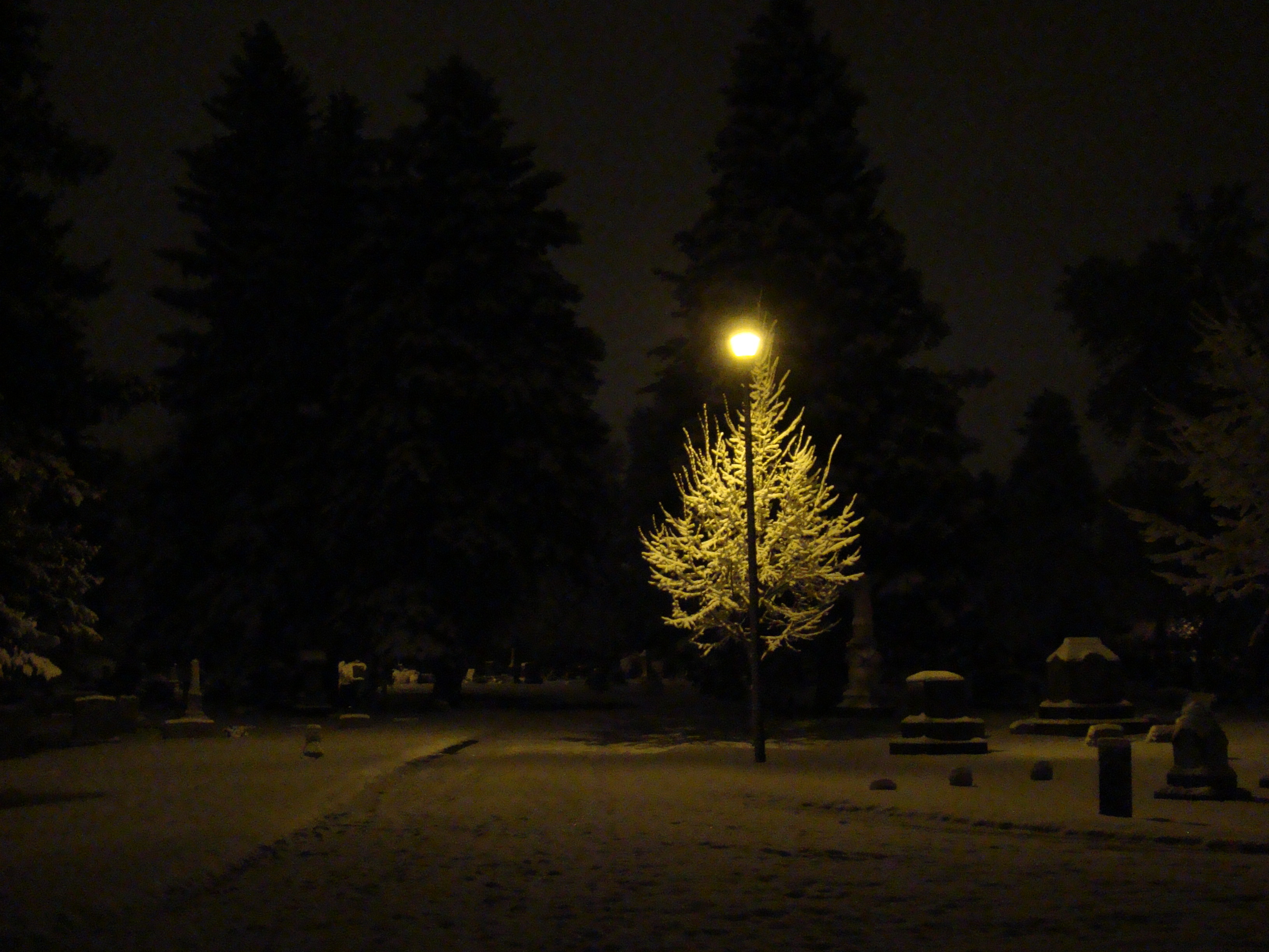 At 3:00am, I set out with my camera, a thick coat, and a tripod to document this beauty. I set off without a particular direction aside from East, eventually finding myself in the local cemetery and later near the old trolley tracks.