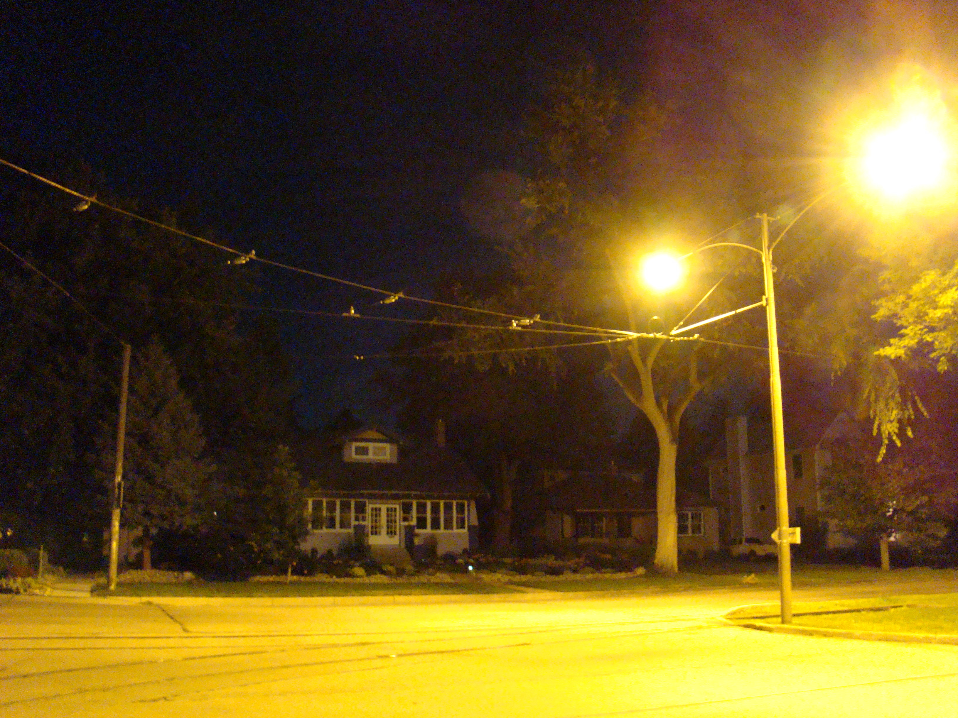 As we got further away from our apartment, it became more and more difficult to find where I had originally taken the shots, as there had been no intention of ever trying to recreate them when they were shot. This proved fairly difficult, and became a fun game akin to "I Spy" as we used streetlight location, tree branch shape, and other landmarks to figure out the angle and direction of the original shots.