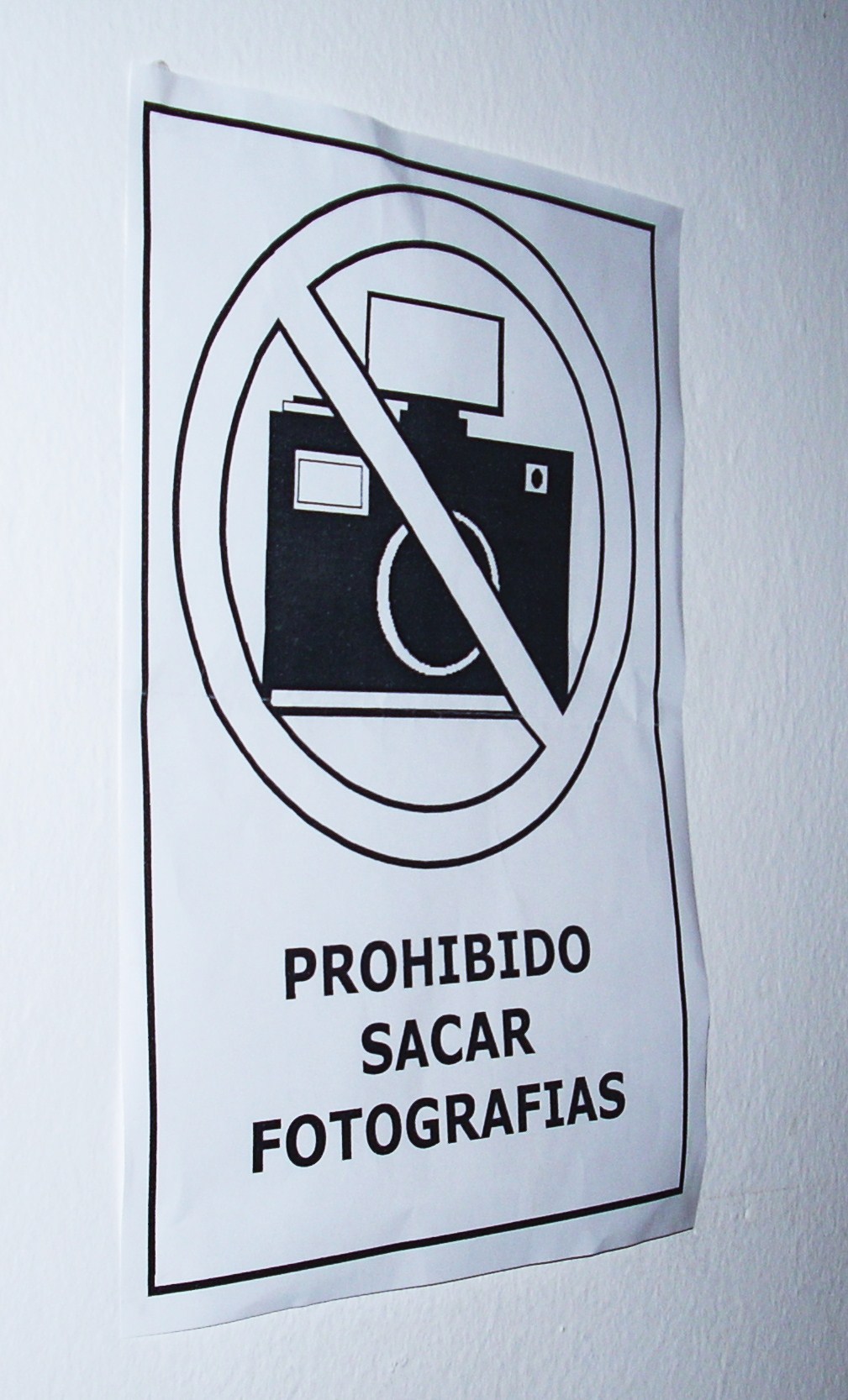 In the Museum of Visual Arts in Montevideo Uruguay no photography is permitted. I figured as much, despite not having seen the sign on the way in. After a few shots the guard came up. Mumbled something to me quietly (as though not to disturb the other museum goers. I was the only museum goer.) I understood something about not taking photos in the museum, and then he pointed to where the sign was.