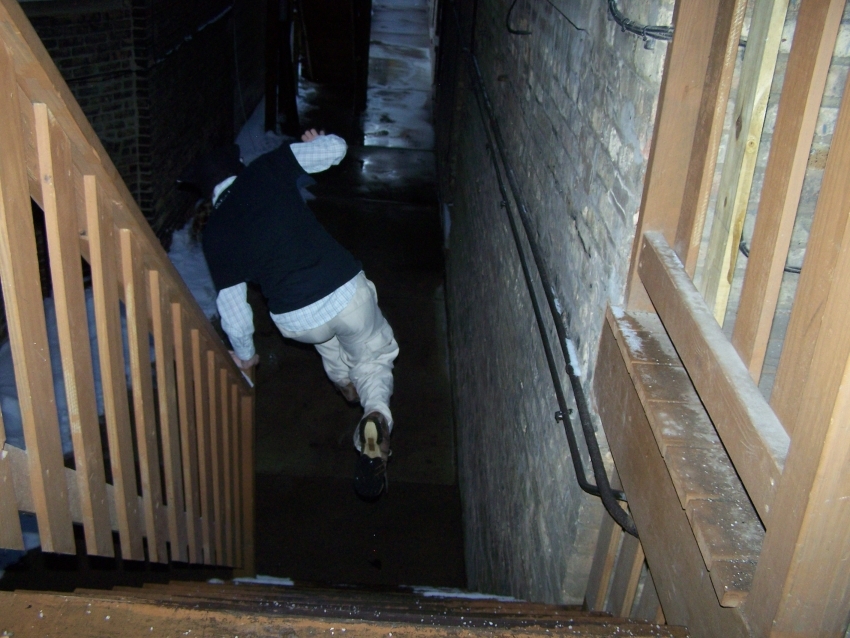 Lady Luck was smiling down upon my person, however, and the paparazzi had accidentally set the camera's timer to have a two-second delay! Dashing down the stairs, I vaulted over the railing, headed for the gate. He managed to snap a photo of me fleeing the apartment, but, perhaps motivated by greed and lust for more, he then attempted to give chase!
