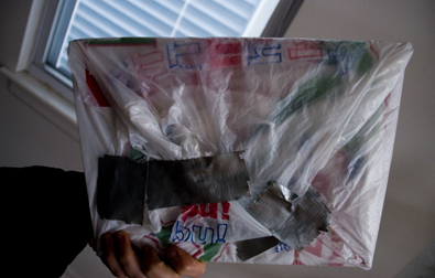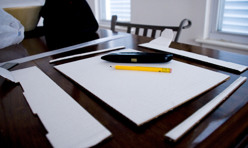 I diligently measured the size of the note so I could cut an equally sized piece of pizza box to paste to it, providing structural protection against the forces of nature.