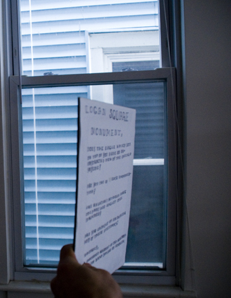 This image was taken from the front of the monument. Note the conspicuousness of note to anyone approaching the column. Also note the eagle which sits on top of column. I specifically address the eagle's ability to see the Chicago skyline from its perch in my note.