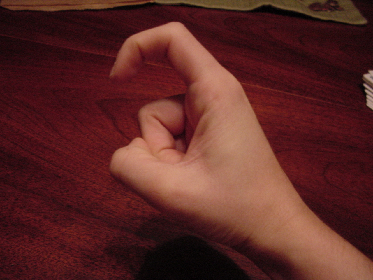 But, wow. That is a fine hand gesture. And, by "fine" I mean terrifying and possibly evil. I like that it has an underbite. I wish I could have tried this last night when *my* hand was drunk.