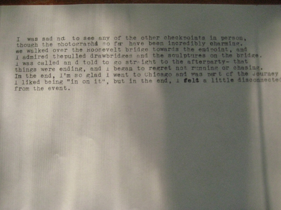 Swell job at the last checkpoint. Sorry there was confusion over the checkpoint location. Also that it took so much trouble to get out of Chicagø. That tire photo is quite impressive. I'm glad you had a donut.